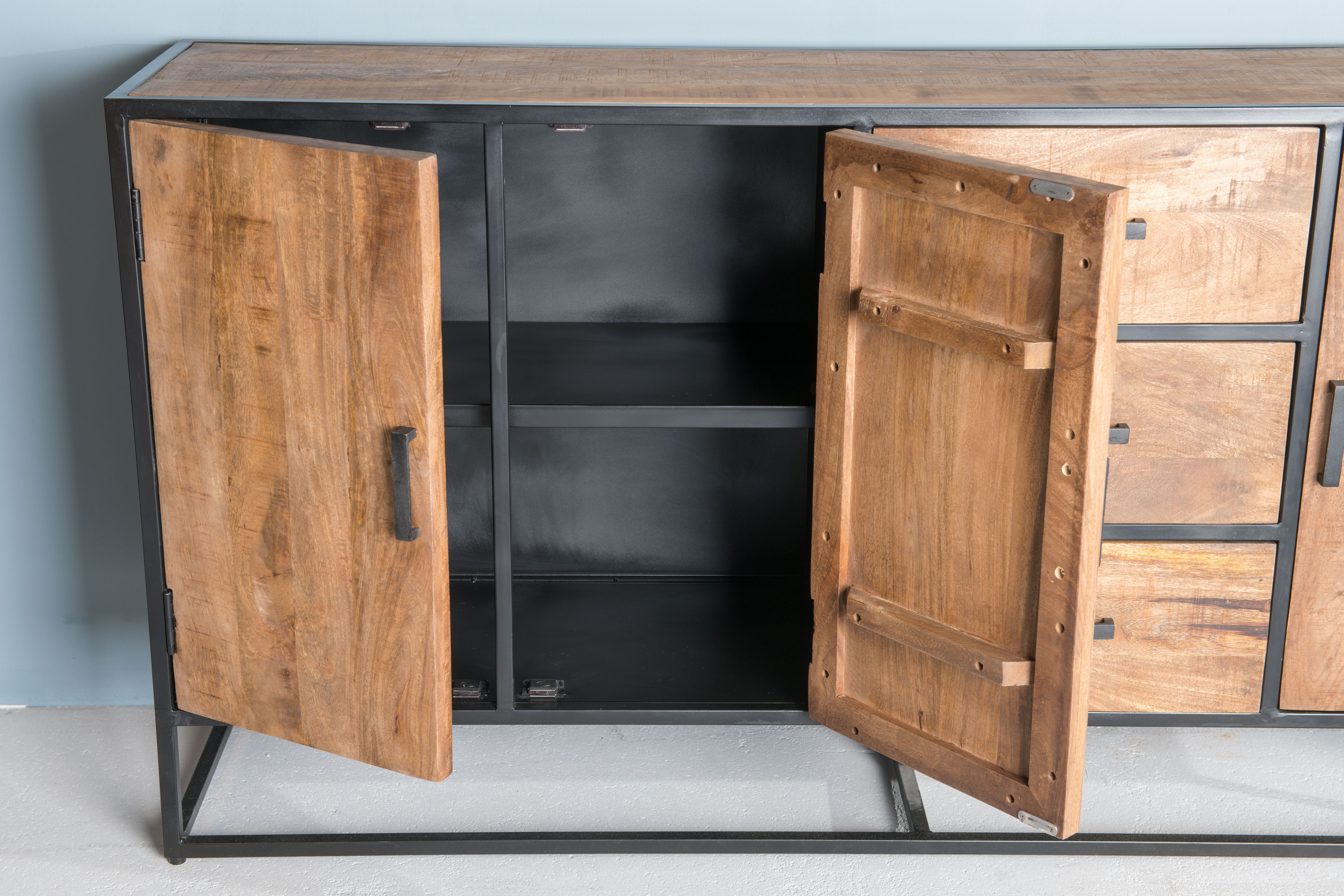 Sturdy Sideboard Mangoholz Stahlgestell Mattpolitur Kommode Anrichte Minimalistischer- Stil