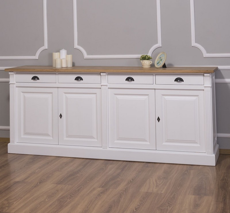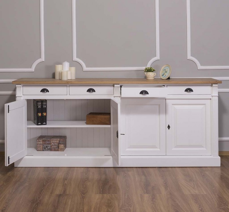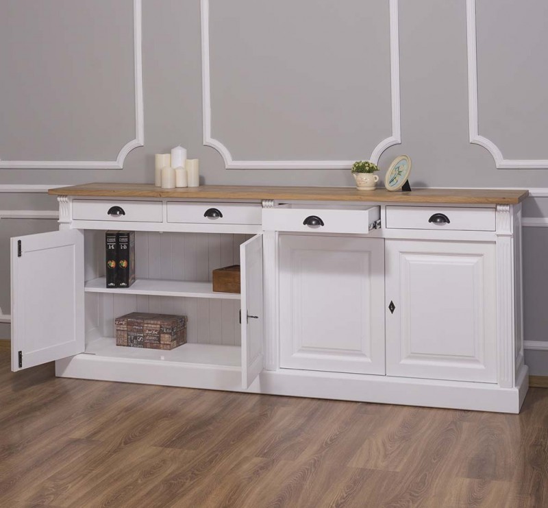 Sideboard 219 cm im Landhaus Stil mit Eichenplatte