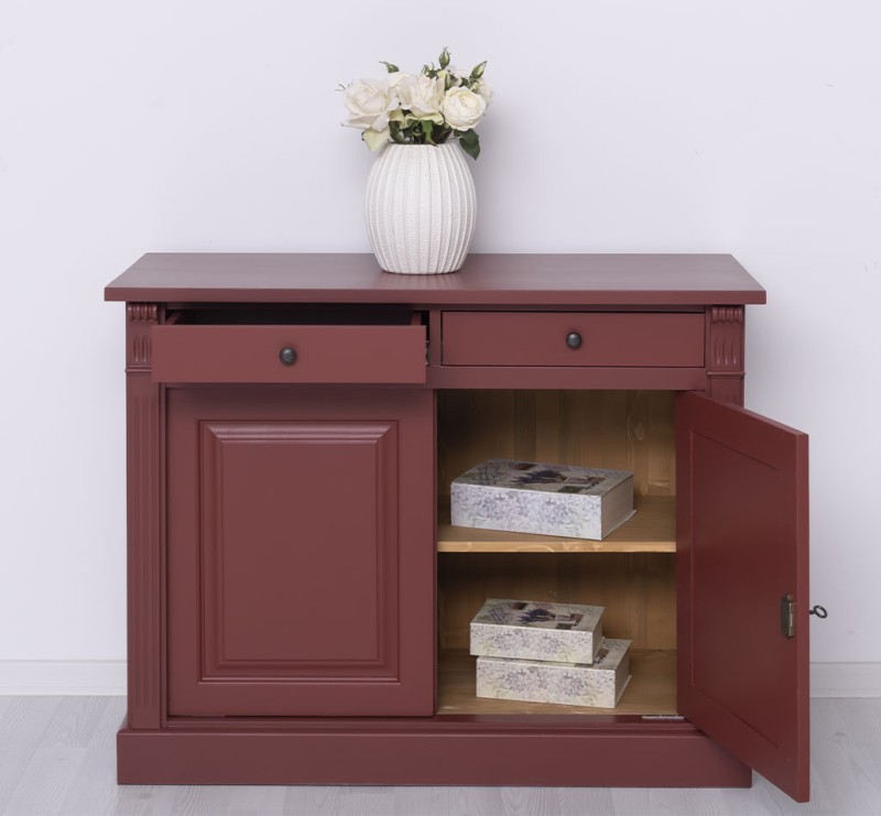 Entdecken Sie die ideale Verbindung von Organisation und Präsentation mit unserem vielseitig einsetzbarer Kommode. Dieses Möbelstück vereint auf elegante Weise Funktionalität und Ästhetik. Dieses Sideboard bietet Stauraum hinter den zwei geschlossenen Türen und in den zwei Schubladen und ermöglicht gleichzeitig die ansprechende Präsentation Ihrer Lieblingsstücke. Das Design dieses Möbelstücks strahlt zeitlose Eleganz aus und passt sich nahtlos in verschiedene Einrichtungsstile ein. Es ist das perfekte Highlight für diejenigen, die sowohl praktische Lösungen als auch raffinierten Stil suchen. Mit seiner exzellenten Verarbeitung garantiert diese Kommode Langlebigkeit und Beständigkeit. Er überzeugt nicht nur mit praktischen Lösungen, sondern wird auch Ihre Freude und Bewunderung langfristig erhalten. Abmessungen: H: 90 cm, B: 116 cm, T: 51 cm Massivholz Möbel Landhausstil Arbeitsplatte 100% Kiefernholz Korpus 100% Kiefernholz Fertig montiert - 1 Teil