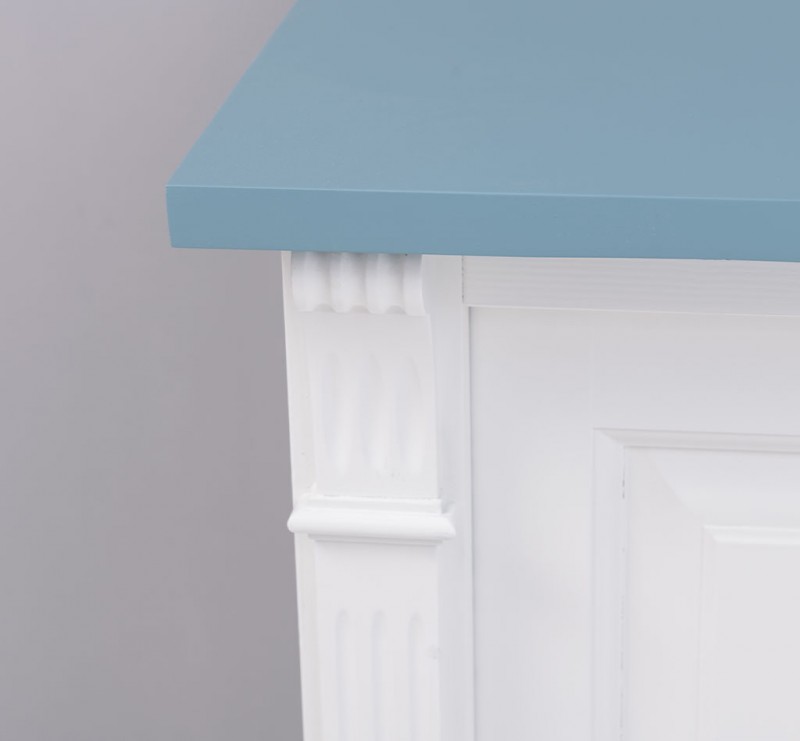 Entdecken Sie die ideale Verbindung von Organisation und Präsentation mit unserem vielseitig einsetzbarem Sideboard. Dieses Möbelstück vereint auf elegante Weise Funktionalität und Ästhetik. Diese Kommode bietet Stauraum hinter den zwei geschlossenen Türen und in den zwei Schubladen und ermöglicht gleichzeitig die ansprechende Präsentation Ihrer Lieblingsstücke. Das Design dieses Möbelstücks strahlt zeitlose Eleganz aus und passt sich nahtlos in verschiedene Einrichtungsstile ein. Es ist das perfekte Highlight für diejenigen, die sowohl praktische Lösungen als auch raffinierten Stil suchen. Mit seiner exzellenten Verarbeitung garantiert dieser Schrank Langlebigkeit und Beständigkeit. Er überzeugt nicht nur mit praktischen Lösungen, sondern wird auch Ihre Freude und Bewunderung langfristig erhalten. Abmessungen: H: 90 cm, B: 116 cm, T: 51 cm Massivholz Möbel Landhausstil Farbe Platte: P071 Korpus:P039 Arbeitsplatte 100% Kiefernholz Korpus 100% Kiefernholz Fertig montiert - 1 Teil