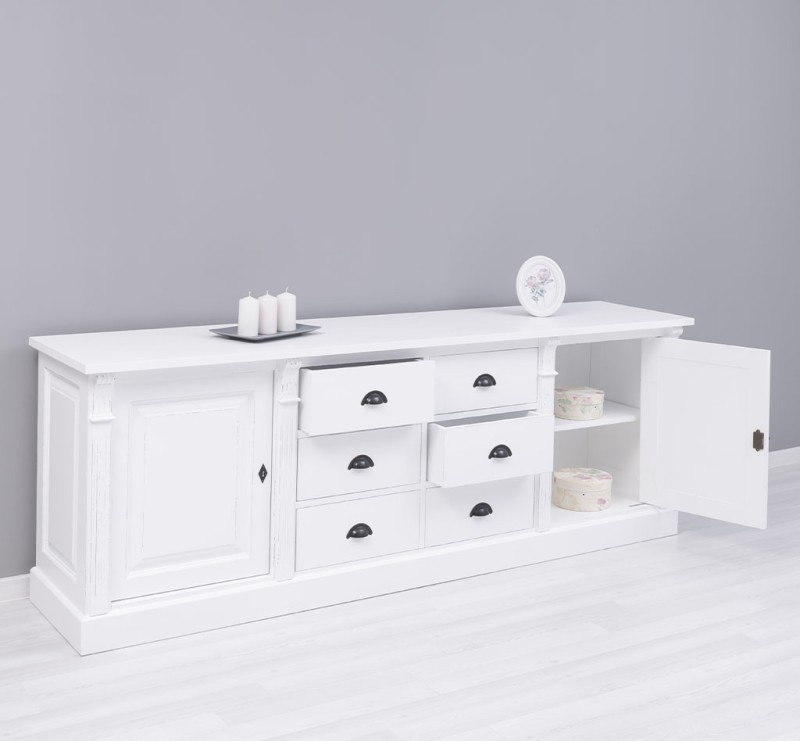Landhaus Anrichte mit 6 Schubladen und 2 Türen - Sideboard Massivholz