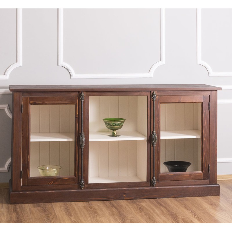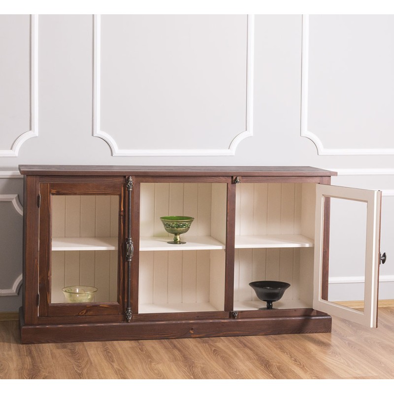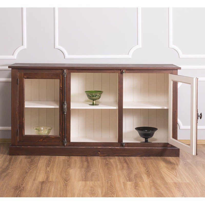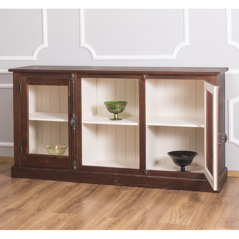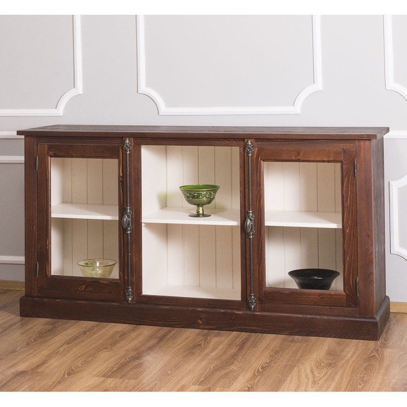 Vitrine mit 2 Glastüren und in der Mitte offenen Ablagefächer - Landhaus Vitrine