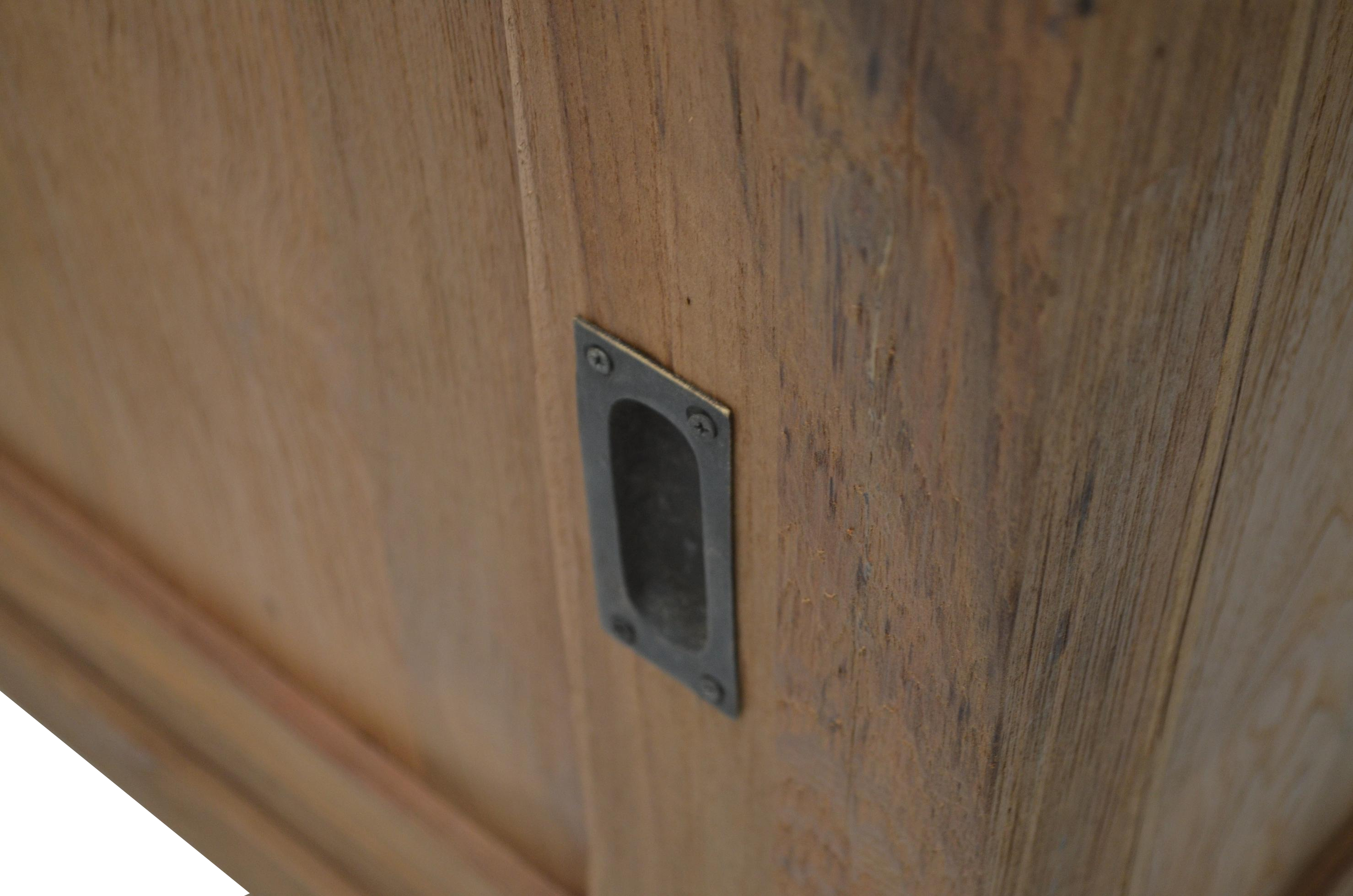Ein Sideboard aus Teakholz mit zwei Schiebetüren und vier großen Schubladen. Durch die intelligente Raumteilung mit Einlegeböden bietet die Kommode viel Platz für ihr Hab und Gut. Das Sideboard wurde aus recycelten Teakholz hergestellt.