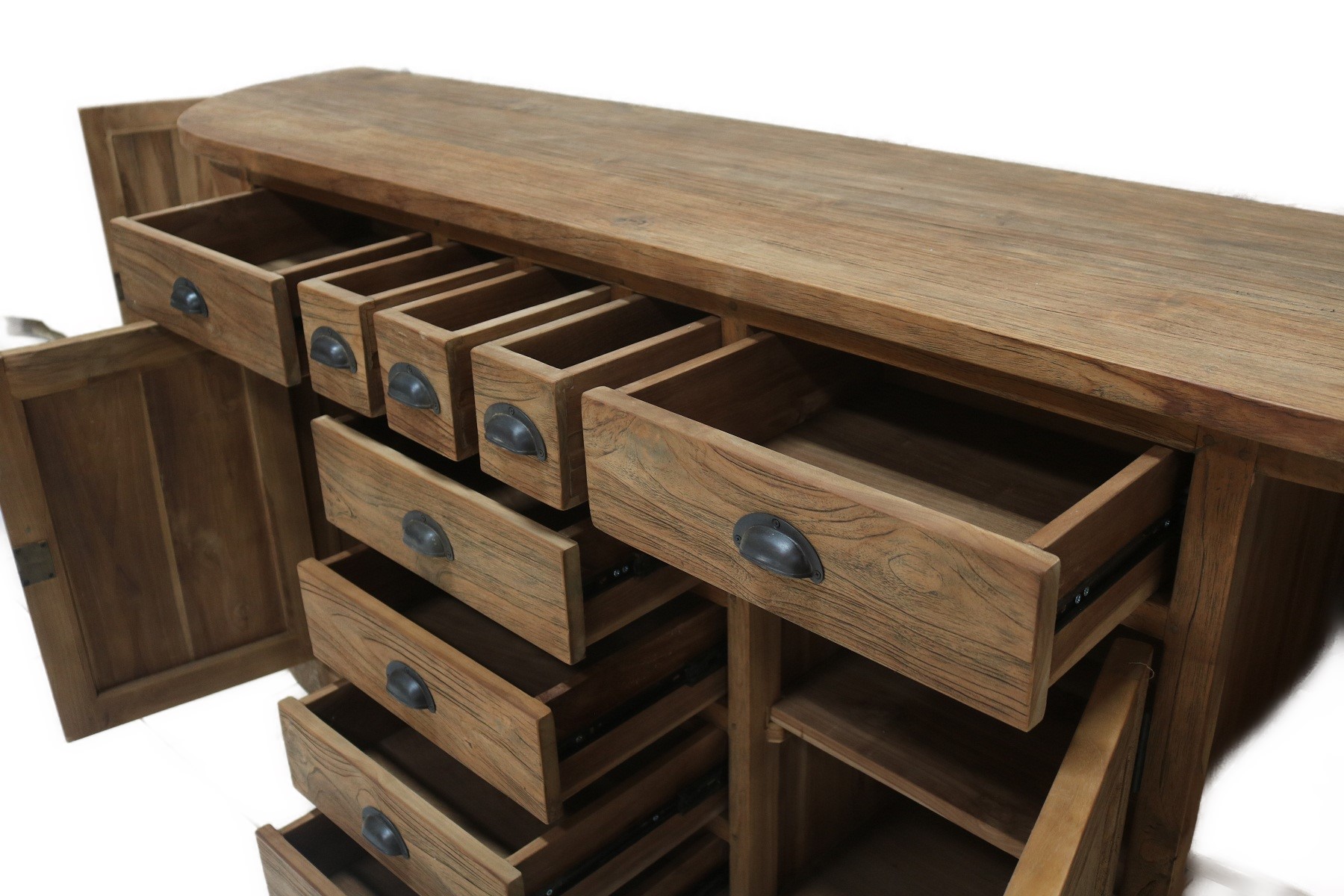 Produktinformationen "Teak Sideboard mit abgerundeten Seiten und Schubladen"