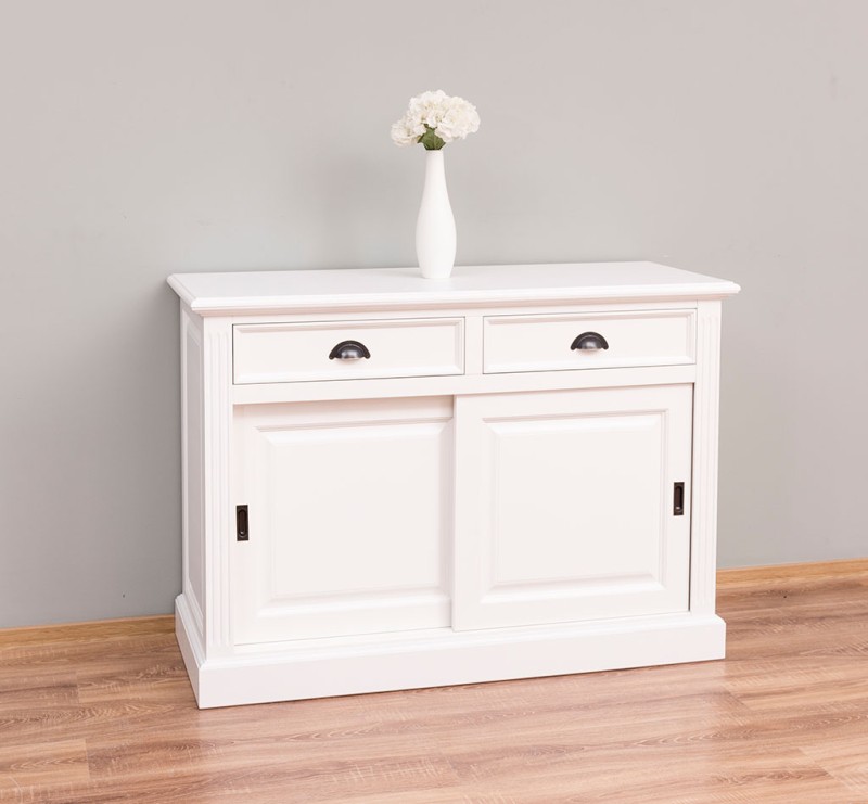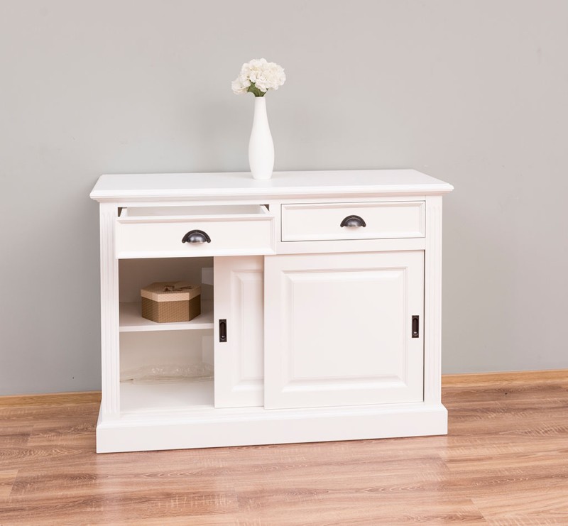 Landhaus Kommode - weiß, mit zwei Schiebetüren