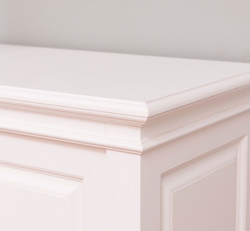 Diese Kommode im angesagten Landhausstil ist ein hochwertiges, zeitloses Möbelstück, welches überall in Ihrem Haus einen prägenden Eindruck hinterlässt und eine gute Figur macht. Entdecken Sie die ideale Verbindung von Organisation und Präsentation mit unserer vielseitg einsetzbaren Kommode. Dieses Möbelstück vereint auf elegante Weise Funktionalität und Ästhetik. Es bietet Stauraum hinter zwei Schiebetüren und in den Schubladen und ermöglicht gleichzeitig die ansprechende Präsentation Ihrer Lieblingsstücke. Das Design dieses Möbelstücks strahlt zeitlose Eleganz aus und passt sich nahtlos in verschiedene Einrichtungsstile ein. Es ist das perfekte Highlight für diejenigen, die sowohl praktische Lösungen als auch raffinierten Stil suchen. Die Abmessungen ca. Höhe 90 cm/ Breite 124 cm/ Tiefe 49 cm fester Regalboden Schiebetüren Landhaus-Stil weiß lackiert Soft Close montiert Geben Sie bitte Ihre gewünschte Farbe beim Kauf im Kommentarfeld mit an.
