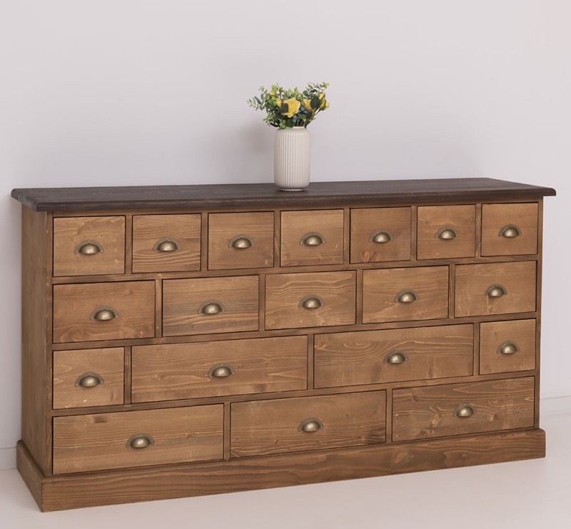 Apothekerschrank mit Eichenplatte –180 cm breit, 19 Schubladen Kommode Landhaus