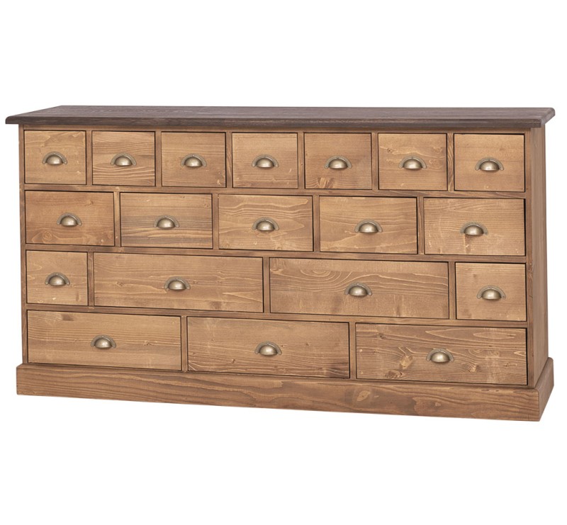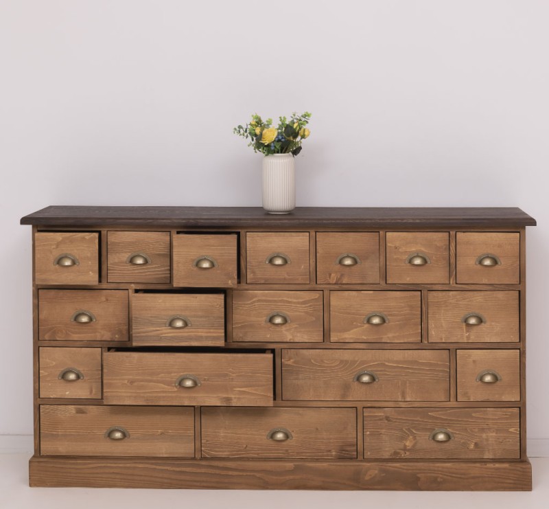 Mit seinen 19 unterschiedlich großen Schubladen bietet dieser Schrank nicht nur viel Stauraum, sondern auch eine beeindruckende Optik, die an klassische Apothekermöbel erinnert. Ideal zur Aufbewahrung von kleinen bis mittelgroßen Gegenständen – ob im Wohnzimmer, Flur, Büro oder Schlafzimmer. Dieses Möbelstück ist nicht nur praktisch, sondern auch ein echter Hingucker – perfekt für alle, die Wert auf Qualität, Stil und Ordnung legen.