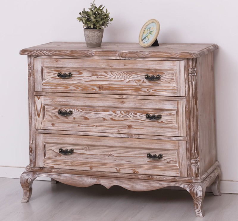 Kommode Landhaus mit 3 Schubladen mit Soft-Close gebürstet