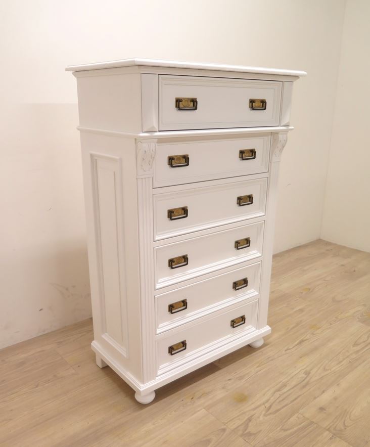 Premium Landhaus Vertiko – 6 Schubladen, Massivholz, weiß, Handarbeit nach alten Vorlagen