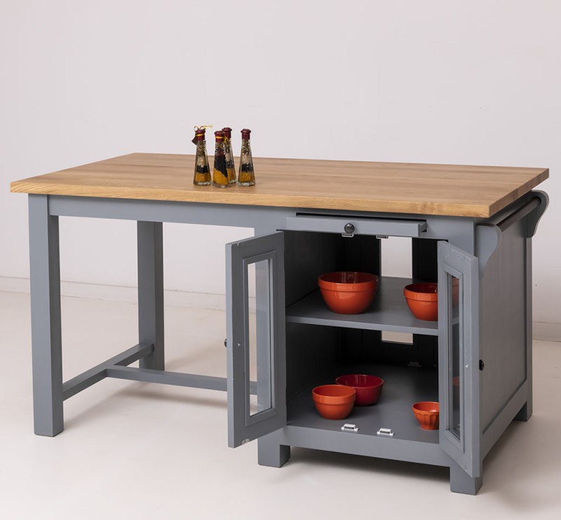 Kücheninsel mit Eichenplatte aus 100% Massivholz - hochwertige Küchenschränke