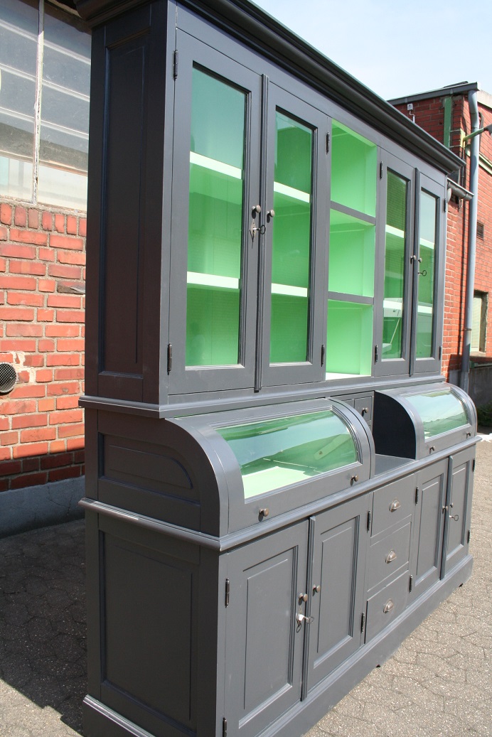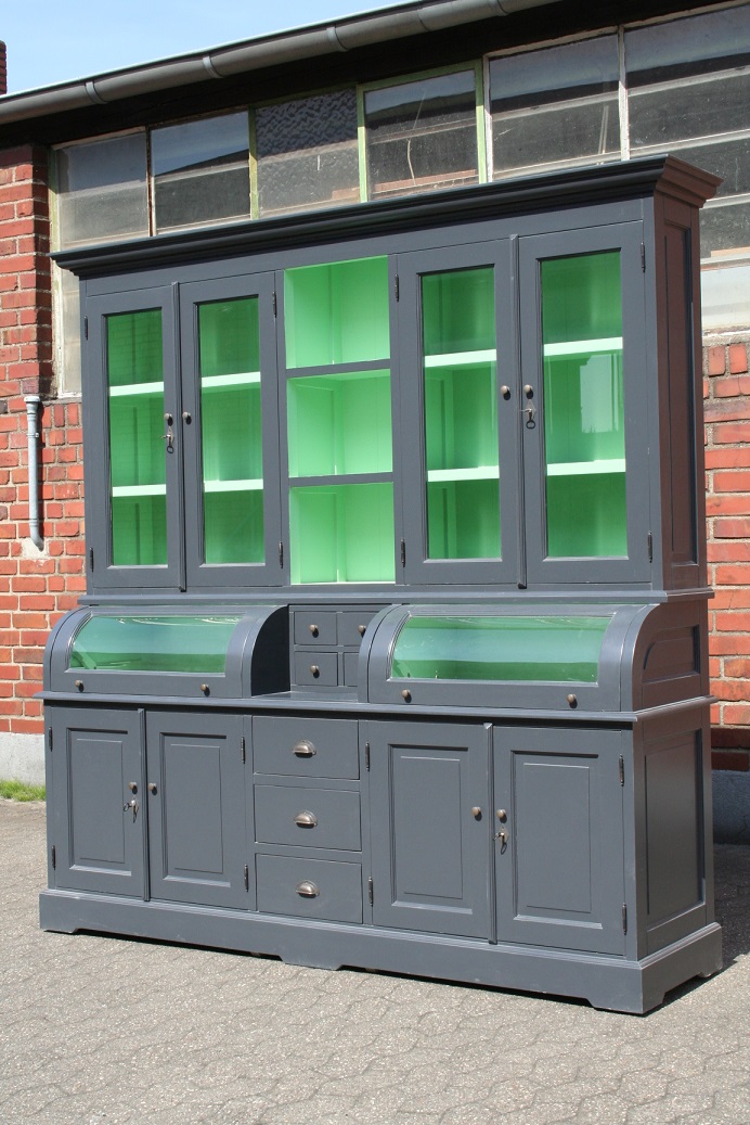 Der schöne Buffetschrank im angesagten Landhaus-Stil ist ein hochwertiges und zeitloses Möbelstück, welches überall in Ihrem Haus einen prägenden Eindruck hinterlässt und eine gute Figur macht. Neben viel Stauraum im unteren Bereich, bietet Ihnen der obere Bereich mit Glasfront die Möglichkeit, den Landhaus-Stil durch Wohnaccessoires zu unterstreichen. Das Buffet ist zweifarbig grau/grün lackiert. Jedes Möbelstück ist ein handgefertigtes Unikat. Der Buffetschrank wird nicht nur Ihr Eigenheim in neuem Glanz erstrahlen lassen, sondern durch seine Langlebigkeit und Anblick Sie auf Dauer erfreuen.