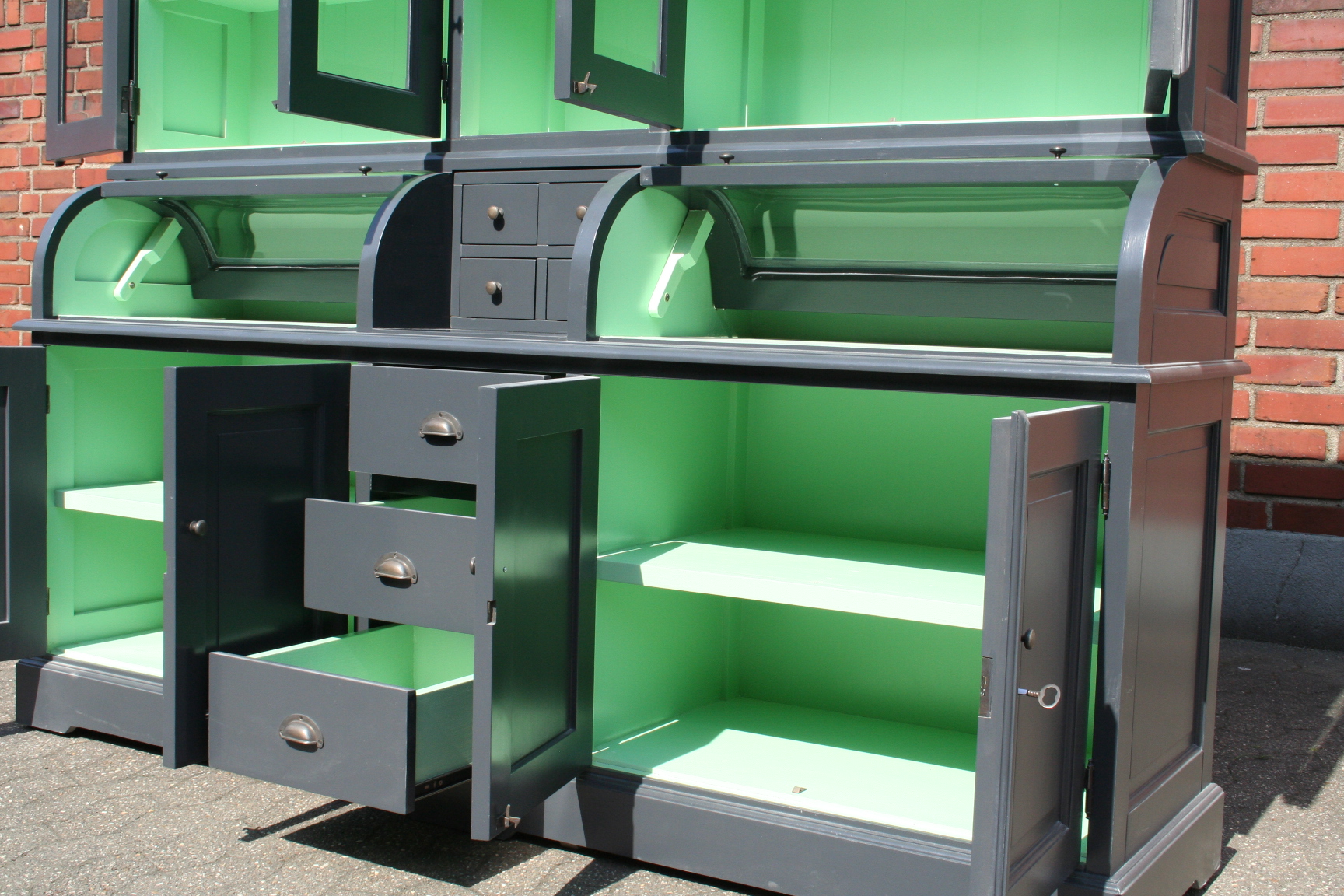 Buffet Schrank Berlin 200cm - anthrazit/grün - Landhaus Möbel