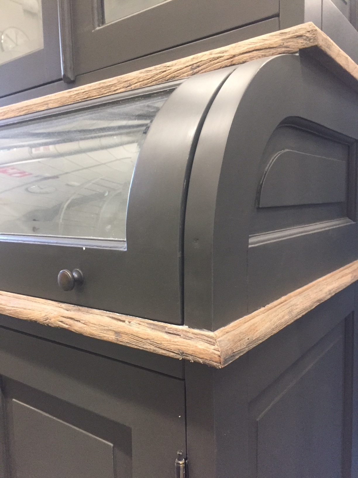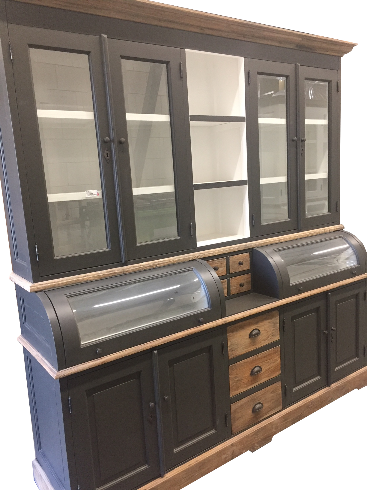 Ein schöner Buffet Schrank im Landhaus-Stil. Das Buffet ist ein zeitloses Möbelstück, welches überall in Ihrem Haus einen prägenden Eindruck hinterlässt und eine gute Figur macht. Mit viel Stauraum im unteren Bereich, bietet Ihnen der obere Bereich mit Glasfront die Möglichkeit, den Landhaus-Stil durch Wohnaccessoires zu unterstreichen. Der Schrank ist aussen Anthrazit lackiert, wobei der Innenbereich weiß abgesetzt ist. Die Schubladen, der Kranz und die Leisten sind in massiven Eichenholz belassen. Jedes Möbelstück ist individuell gefertigt und ein schönes Unikat. Der 2-teilige Schrank wird nicht nur Ihr Eigenheim in neuem Glanz erstrahlen lassen, sondern durch seine Langlebigkeit und Anblick Sie auf Dauer erfreuen. Ein echter Hingucker in Ihrer Wohnküche oder Küche, in Ihrem Wohnzimmer, in Ihrem Eingangsbereich oder Ihrem Esszimmer.