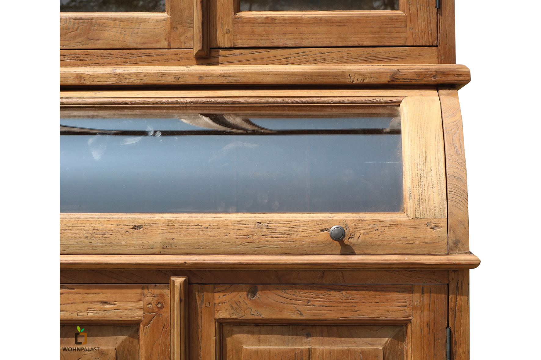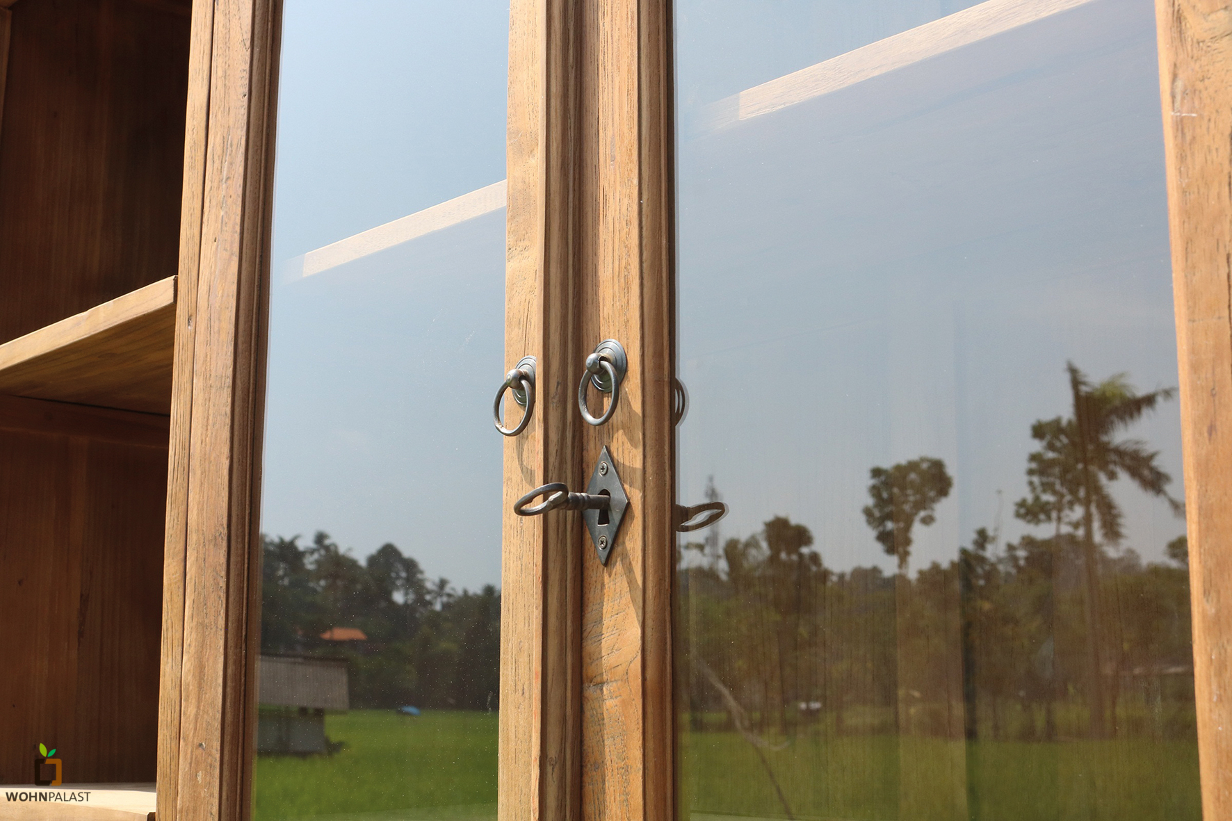 Der große Buffet Schrank wurde aus recyceltem Teakholz gebaut und mit schönen Messingbeschlägen versehen.Dadurch bekommt er einen ganz eigenen Charme. Unsere massiven Teakmöbel sind sehr belastbar und leicht zu pflegen. Das Buffet ist zweiteilig mit Ober- und Unterteil. Zeitlos attraktiv präsentiert sich ein Teakmöbel auch noch nach Jahren. Jedes Modell ist ein Unikat. Das Teak Buffet ist verschiedenen Größen erhältlich. Dieses Möbelstück wird nicht nur Ihr Eigenheim in neuem Glanz erstrahlen lassen, sondern auch Sie durch seine Langlebigkeit auf Dauer erfreuen. Abmessungen H/B/T: ca. 215/150/50cm In verschiedenen Größen und Holzarten erhältlich!! Details: Teakholz massiv recyceltes Teakholz schöne Maserung fertig montiert 2-teilig Landhaus Möbel