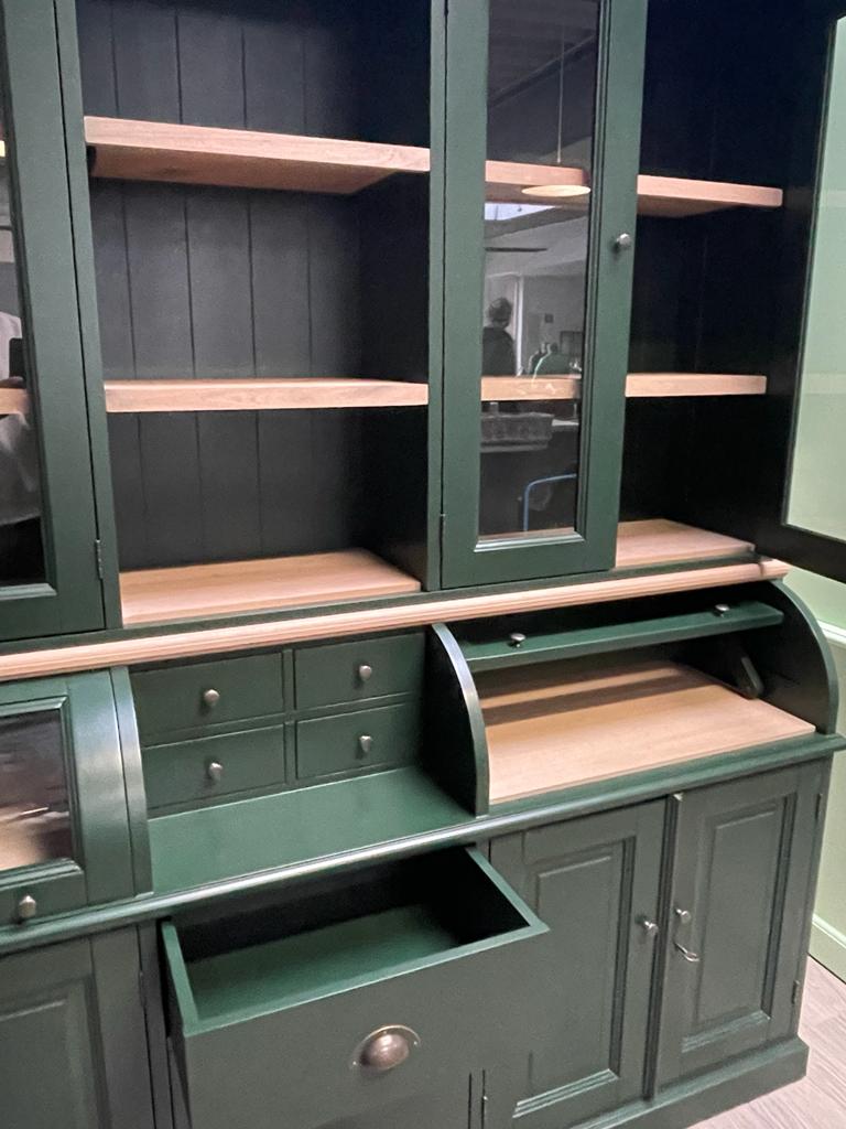Der schöne Buffetschrank im angesagten Landhaus-Stil ist ein hochwertiges und zeitloses Möbelstück, welches überall in Ihrem Haus einen prägenden Eindruck hinterlässt und eine gute Figur macht. Neben viel Stauraum im unteren Bereich, bietet Ihnen der obere Bereich mit Glasfront die Möglichkeit, den Landhaus-Stil durch Wohnaccessoires zu unterstreichen. Das Buffet ist zweifarbig grau/grün lackiert. Jedes Möbelstück ist ein handgefertigtes Unikat. Der Buffetschrank wird nicht nur Ihr Eigenheim in neuem Glanz erstrahlen lassen, sondern durch seine Langlebigkeit und Anblick Sie auf Dauer erfreuen. Maße : H/B/T: 210 x 200 x 30/50 cm Auf Wunsch in jeder RAL-Farbe erhältlich. Die Farbe bitte einfach im Ablauf des Bestellvorgangs unter Bemerkungen angeben. Auch zweifarbig erhältlich. Landhausstil Farbe grau/mint oder Wunschfarbe wählbar! fertig montiert 2-teilig