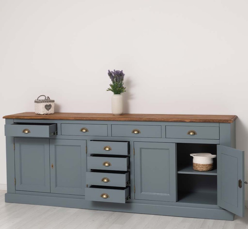 Sideboard 240cm mit Schubladen und Türen Massivholz mit Eiche