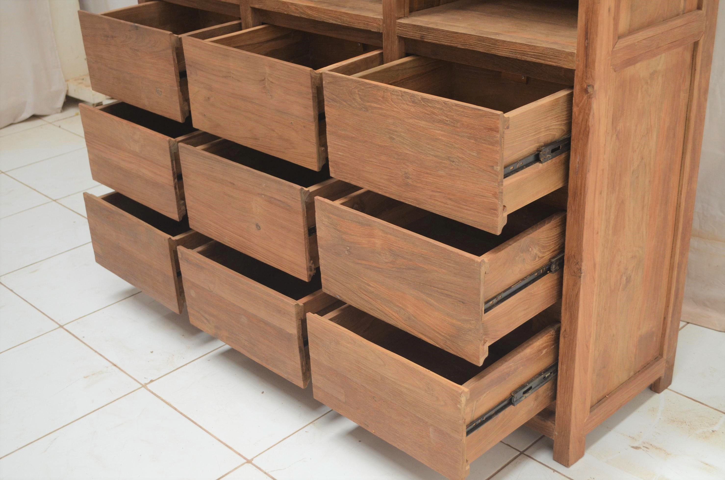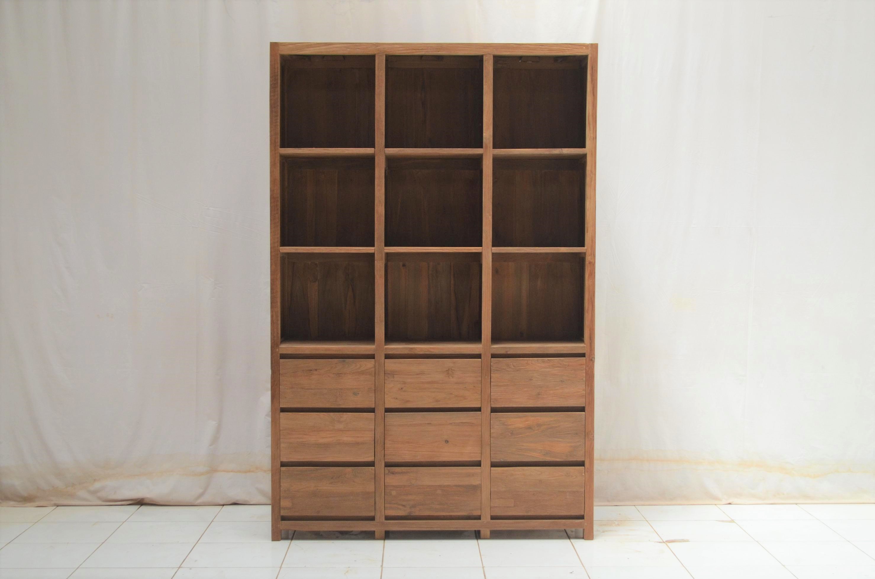 Bücherschrank mit Schubladen Teak massiv - Regal Teakholz