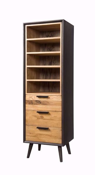 Das Bücherregal Bresso ist ein markantes Erscheinungsbild unter den vielen Industriemöbeln. Das Regal Bresso ist innovativ und zeichnet sich durch sein einzigartiges Layout, die massiven Eichentüren und das Retro-Bein aus. Die Türen und Schubladen schließen mit einem Soft-Close-System. Die Farbkombination, bestehend aus zwei warmen Brauntönen, verleiht dem Möbel seinen Charme. Das Bücherregal hat fünf offene Fächer und drei Schubladen.