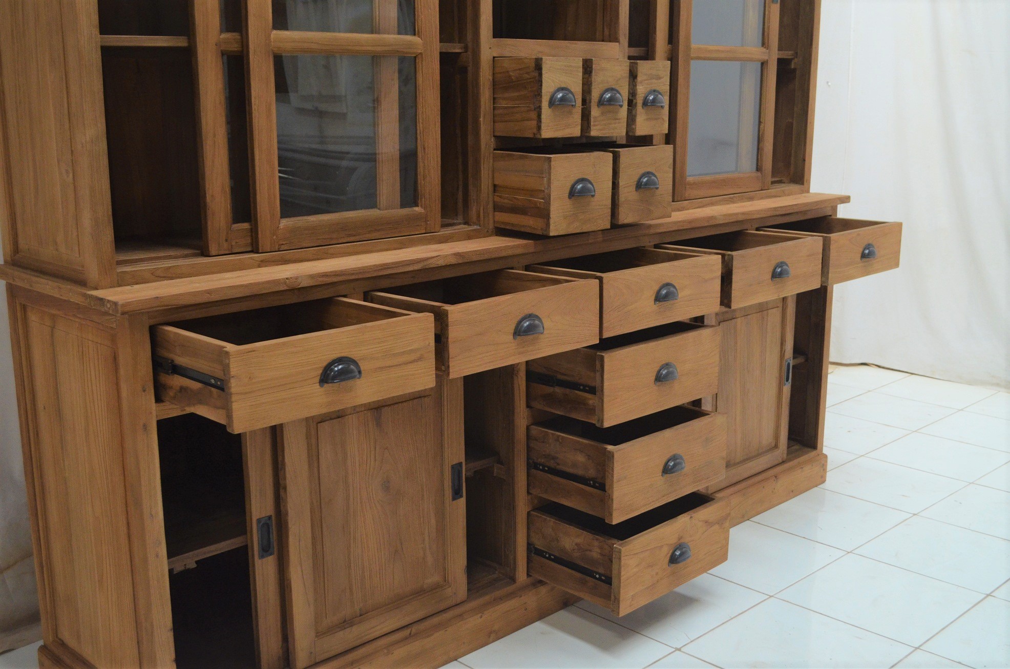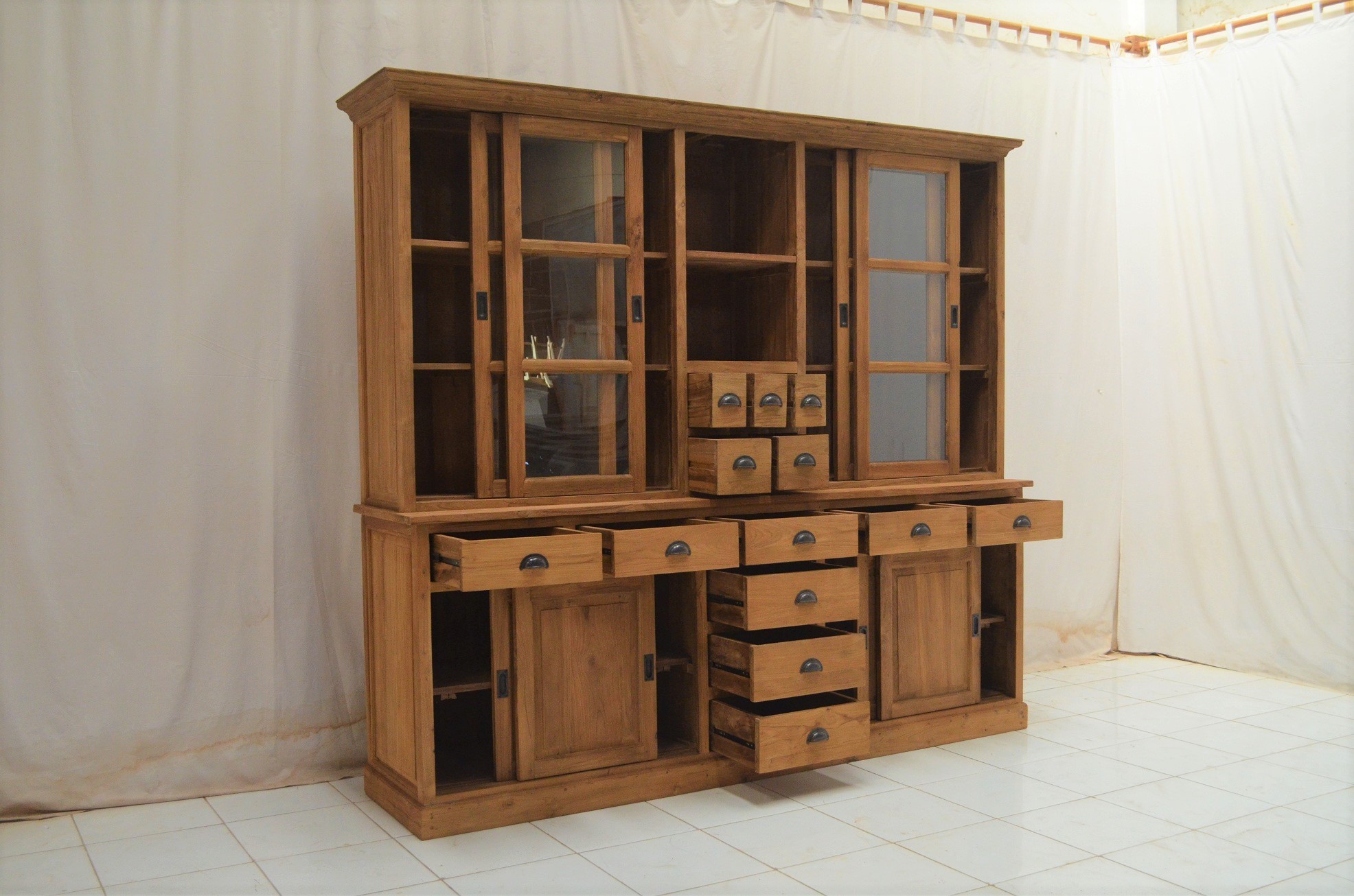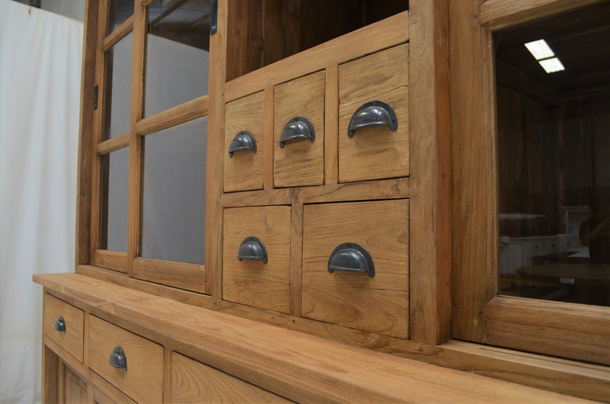 Der große Buffetschrank im angesagten Landhaus-Stil ist ein hochwertiges und zeitloses Möbelstück, welches überall in Ihrem Haus einen prägenden Eindruck hinterlässt. Neben viel Stauraum im unteren Bereich, bietet Ihnen der obere Bereich mit Glasfront die Möglichkeit, durch Wohnaccessoires den Landhaus-Stil zu unterstreichen. Der Schrank wurde aus recyceltem Teakholz hergestellt. Jedes Möbelstück ist ein handgefertigtes Unikat. Der Buffetschrank wird nicht nur Ihr Eigenheim in neuem Glanz erstrahlen lassen, sondern durch seine Langlebigkeit und Anblick Sie auf Dauer erfreuen.