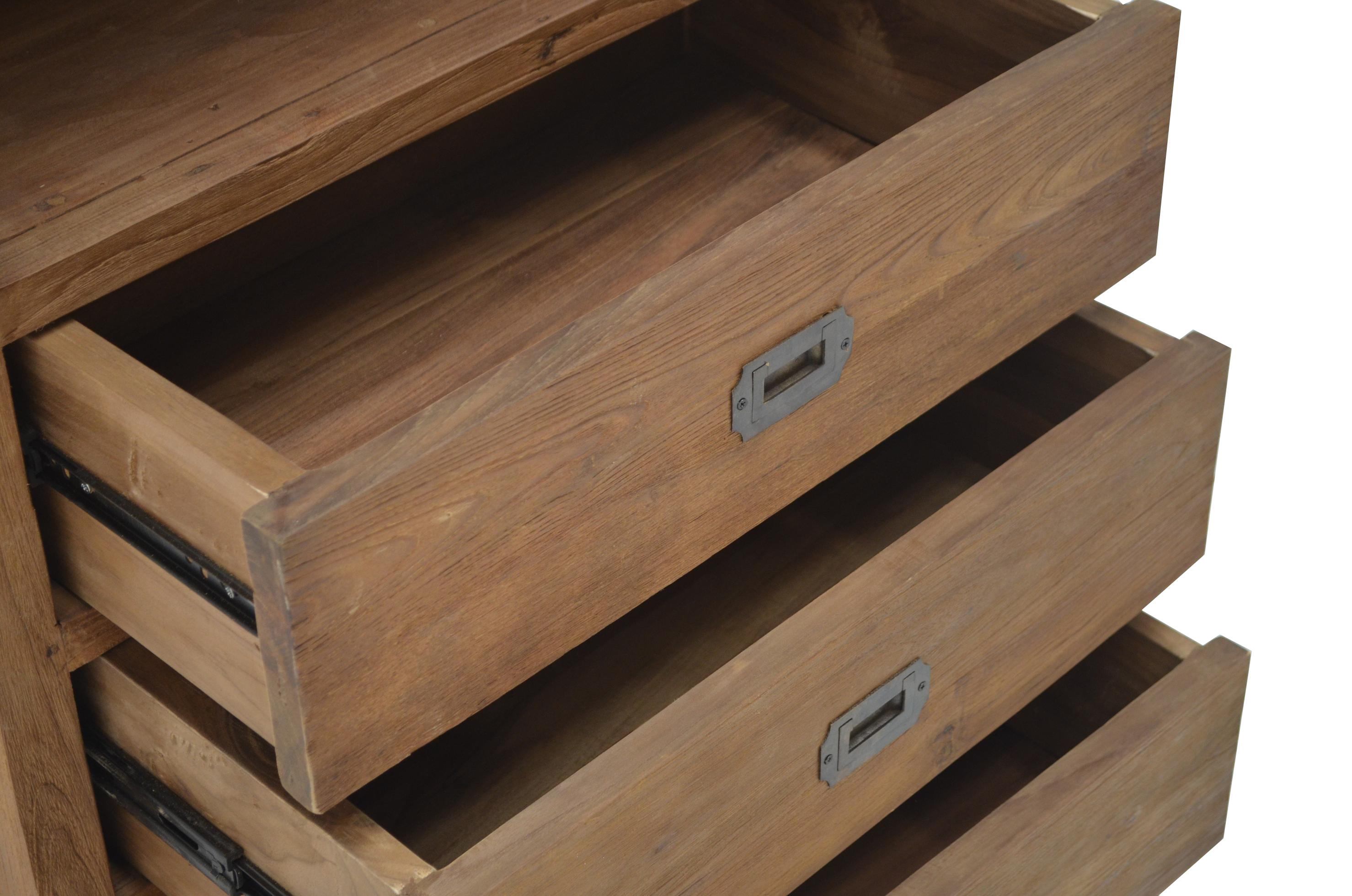 Ein schönes Bücherregal aus recyceltem Teakholz. Das Massivholz Regal im angesagten Landhaus-Stil ist ein hochwertiges und zeitloses Möbelstück, welches überall in Ihrem Haus einen prägenden Eindruck hinterlässt und eine gute Figur macht. Sie können mit diesen Regal Ihre Bücher stilvoll präsentieren. Die massiven Boden sind fest und stabil. Im unteren Teil haben Sie noch drei zusätzliche Schubladen. Jedes Möbelstück ist ein handgefertigtes Unikat. Das Teak Bücherregal wird nicht nur Ihr Eigenheim in neuem Glanz erstrahlen lassen, sondern durch seine Langlebigkeit und Anblick Sie auf Dauer erfreuen.