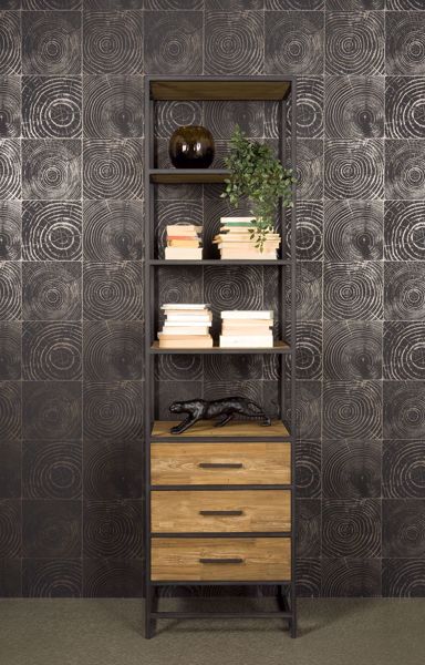 Das Bücherregal Felino 60 cm wird traditionell aus 100 % recyceltem Teakholz hergestellt. Das sorgfältig ausgewählte Teakholz und die Metallapplikationen sorgen für ein schönes und industrielles Erscheinungsbild. Dieses Möbelstück enthält drei Regale und drei Schubladen, sodass Sie genügend Bücher darin aufbewahren können.