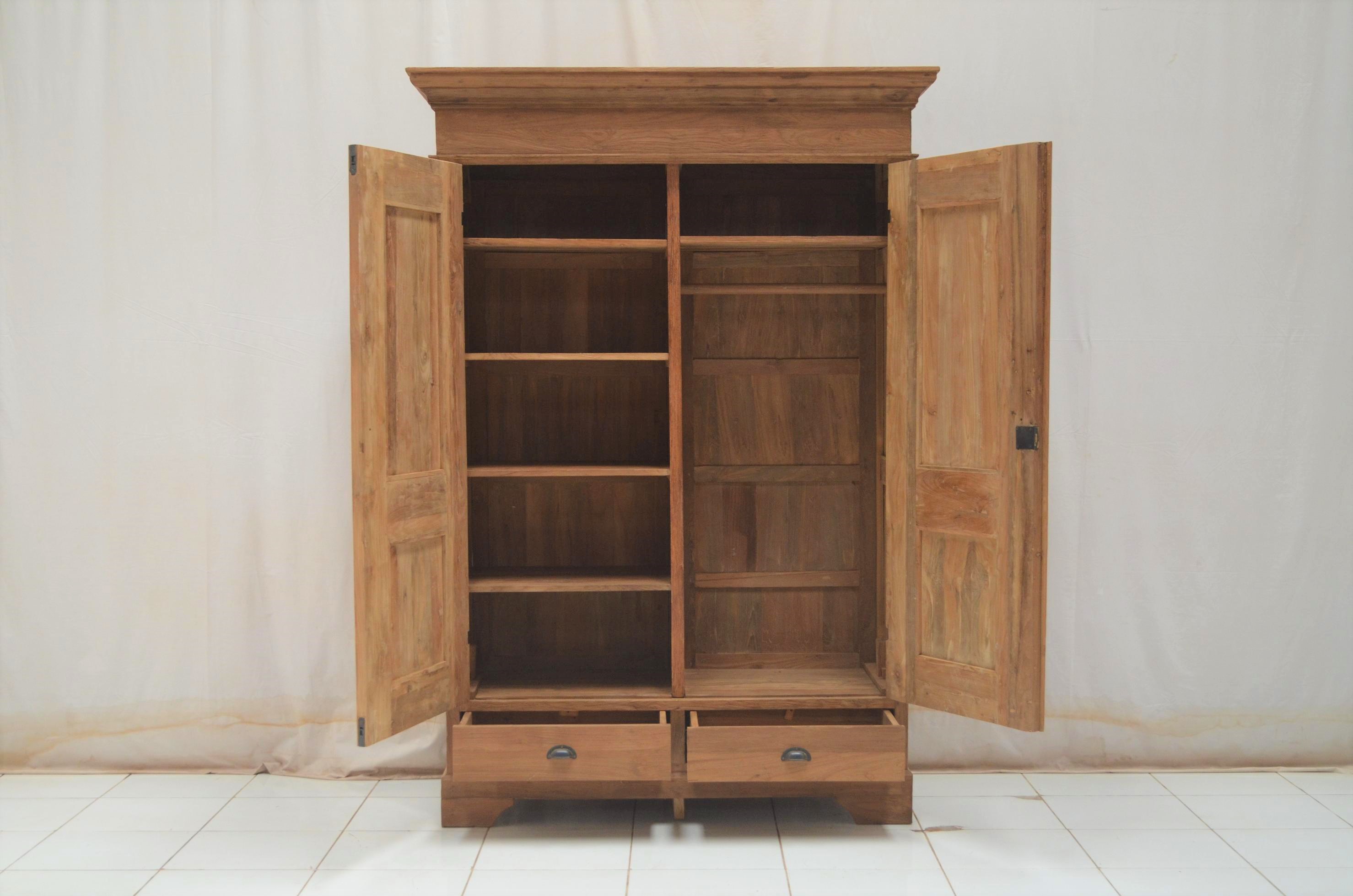 Kleiderschrank Düsseldorf 147 cm – 2-türig, Massivholz Teak, Unikat aus recyceltem Holz