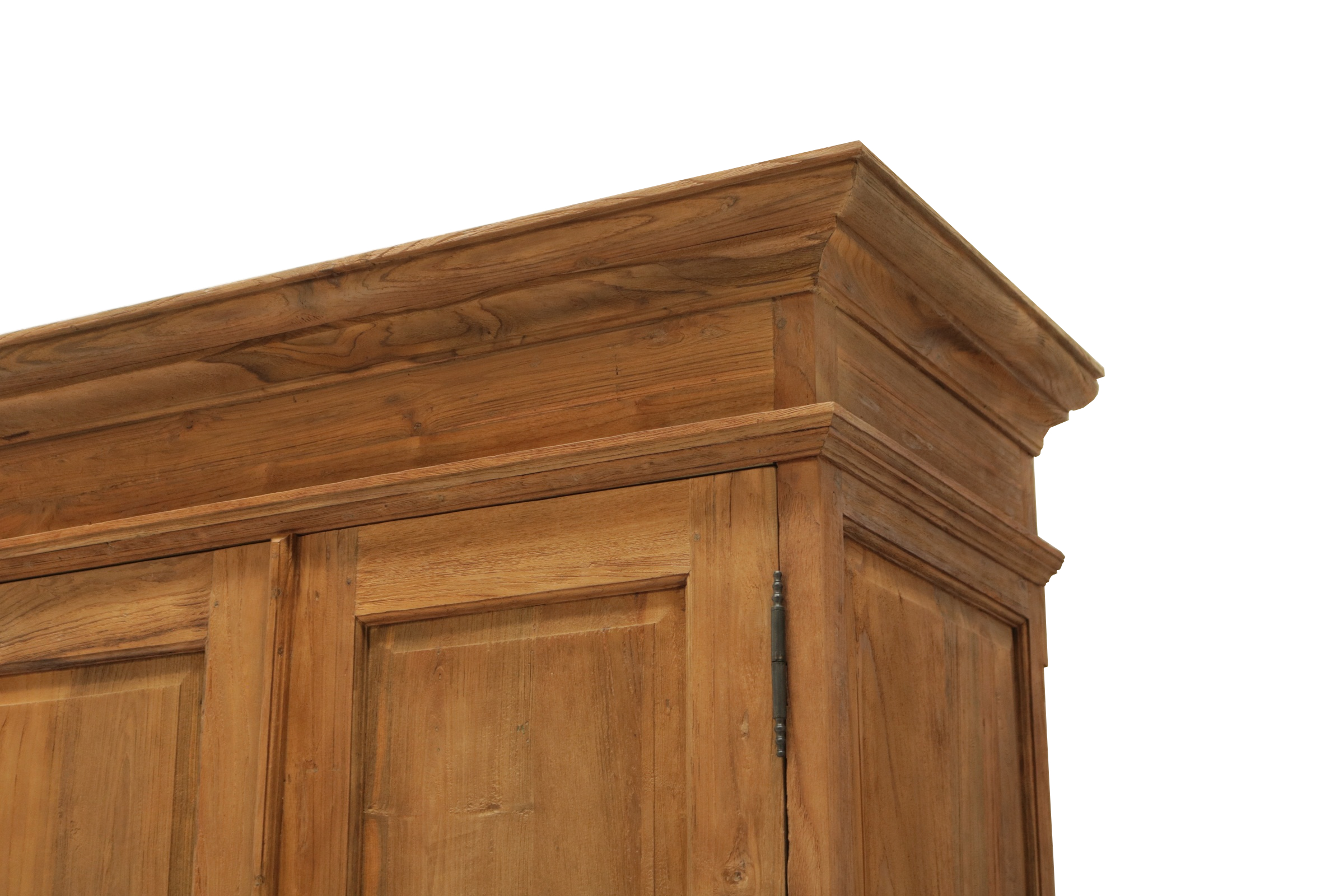 Dieser Teak Schrank ist ein zeitloses Möbelstück, welches überall in Ihrem Haus einen prägenden Eindruck hinterlässt und eine gute Figur macht. Dieser Schrank wurde aus recyceltem Teak Holz gefertig und ist somit ein wahres Unikat. Er wird nicht nur Ihr Eigenheim in neuem Glanz erstrahlen lassen, sondern Sie durch seine Langlebigkeit auch auf Dauer erfreuen. Mit Lamellentüren und Innenausbau. Im unteren Bereich zwei große Schubladen. Abmessungen: H/B/T: ca. 210 x 187 x 70 cm mit Kranz - (Korpus 210 x 170 x 60 cm) Teakholz recycelt Farbe: Teakholz natur; gebürstet zerlegbar ein handgefertigtes Unikat
