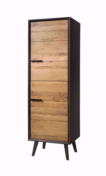 Der Bresso Schrank ist ein auffälliges Erscheinungsbild unter den vielen Industriemöbeln. Der Bresso Dielenschrank ist innovativ und zeichnet sich durch sein einzigartiges Layout, die massiven Eichentüren und das Retro-Bein aus. Die Türen und Schubladen schließen mit einem Soft-Close-System. Die Farbkombination, bestehend aus zwei warmen Brauntönen, verleiht dem Möbel seinen Charme. Der Vorratsschrank hat zwei Türen.