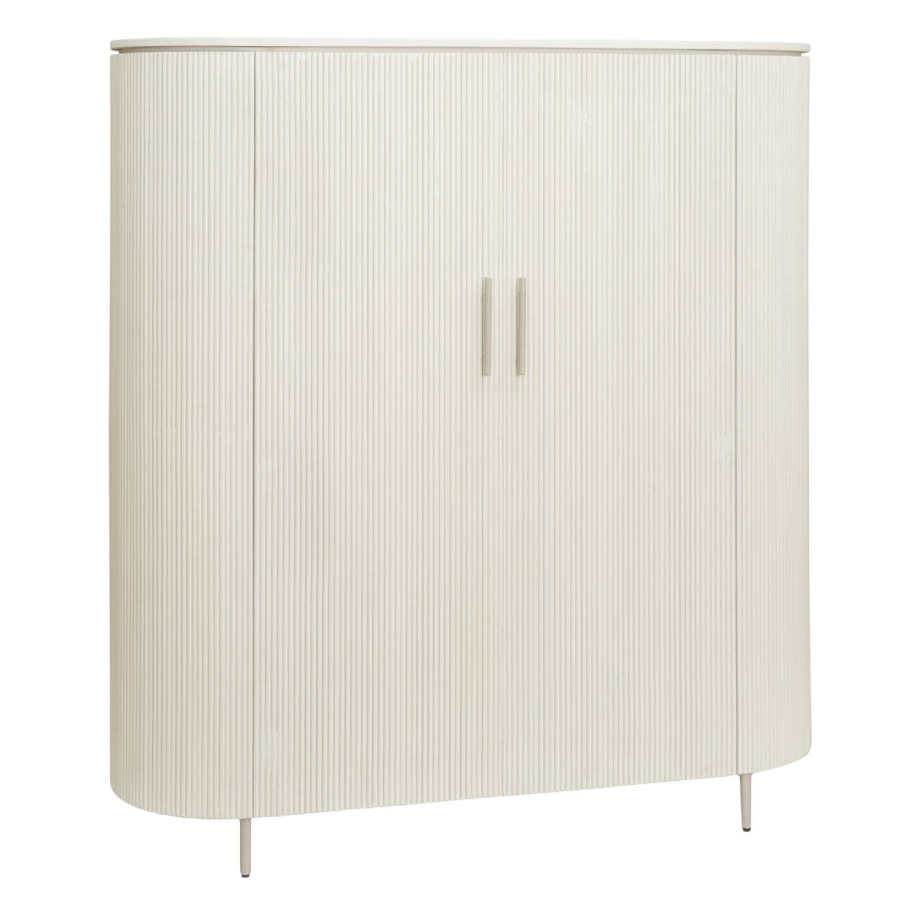 Diese 2-türige Schrank im skandinavischen Stil ist aus der Innenarchitekturwelt nicht mehr wegzudenken. Die trendigen Rundungen und die schönen gerippten Fronten aus natürlichen Materialien und Naturtönen stehen im Mittelpunkt und sind zeitlos. Der Corbetta Schrank passt perfekt in dieses Bild. Die mineralische Oberfläche verleiht den Möbeln ein wunderschönes natürliches Aussehen und sorgt für ein authentisches Aussehen.