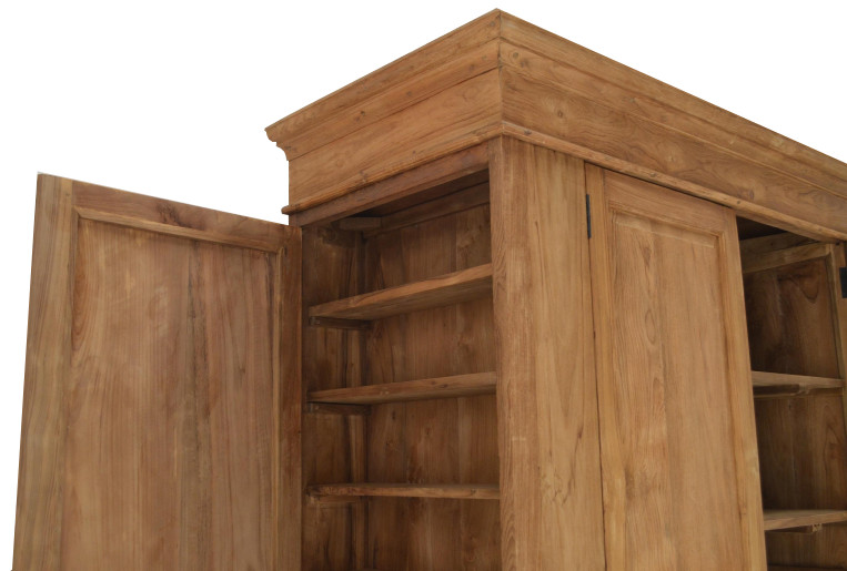 Erleben Sie das Beste an Stauraum und Ästhetik mit unserem Kleiderschrank aus Teakholz mit Regalen. Dieser Schrank vereint funktionale Vielseitigkeit mit der natürlichen Schönheit von Teakholz.