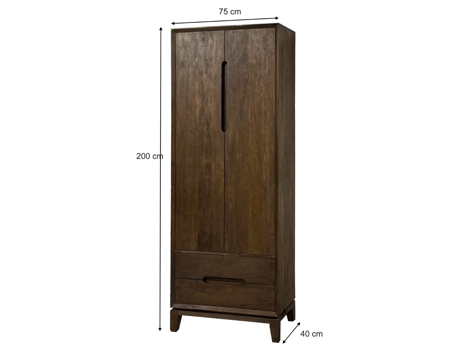 Abmessungen: Höhe: 200 cm, Breite: 75 cm, Tiefe: 40 cm.