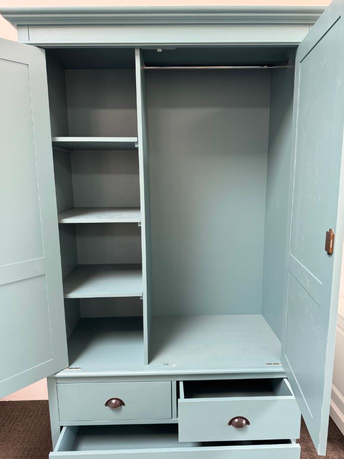 Der Kleiderschrank im Landhausstil ist ein hochwertiges, zeitloses Möbelstück, das in jedem Raum Ihres Hauses einen bleibenden Eindruck hinterlässt. Mit seinem klassischen Design fügt er sich nahtlos in verschiedene Einrichtungsstile ein und verbindet praktische Lösungen mit raffiniertem Stil.