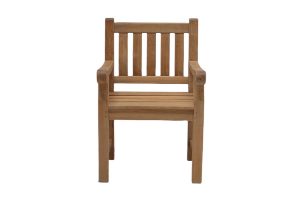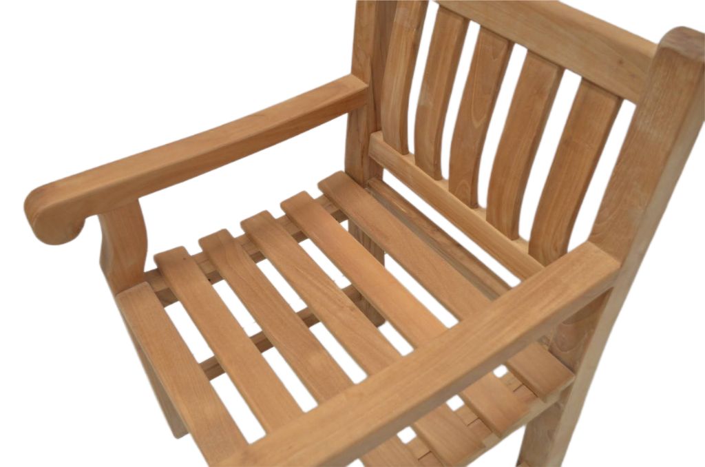 Ein schöner Gartenstuhl aus massivem Teakholz. Der Stuhl ist robust und massiv. Der Stuhl ist witterungsbeständig und kann auch bei Wind und Regen draußen stehen. Ein hochwertig und robust verarbeiteter Gartenstuhl. Der Teakstuhl hat eine ergonomisch geformte Sitz- und Rückenfläche und bietet Ihnen hohen Sitzkomfort. Teakholz ist ein dichtes Hartholz mit einem hohen natürlichen Öl Anteil, ist daher von Natur aus wasserabweisend und sehr robust. Der Stuhl ist pflegeleicht.