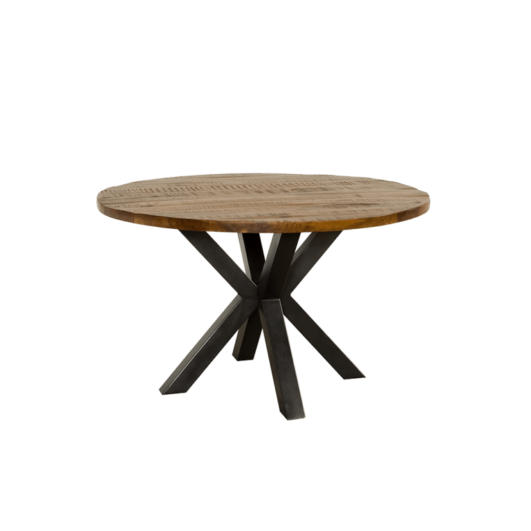 Der runde Esstisch Oakland passt zu vielen verschiedenen Einrichtungsstilen. Der Tisch ist ideal für ein gemütliches Essen mit der Familie oder Freunden. Die Tischplatte des Esstisches besteht aus massivem Mangoholz und wird von gekreuzten Beinen aus Metall getragen. Abmessungen L/B/H: 120/120/75,5 cm Naturbelassene Farbvariation der Holzmaserung Robustes aussehen Runde Form Tischplattenstärke 4 cm Sitzkapazität: 3-4 Personen