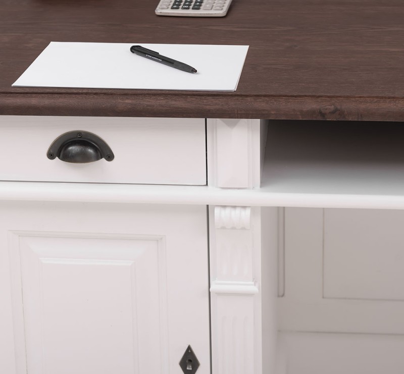 Die breite Arbeitsfläche bietet Ihnen viel Platz zum Arbeiten. Für mehr Ordnung an Ihrem Arbeitsplatz, sorgen zwei geräumige Schubladen, ein großes Ablagefach, sowie zwei Unterschränke.