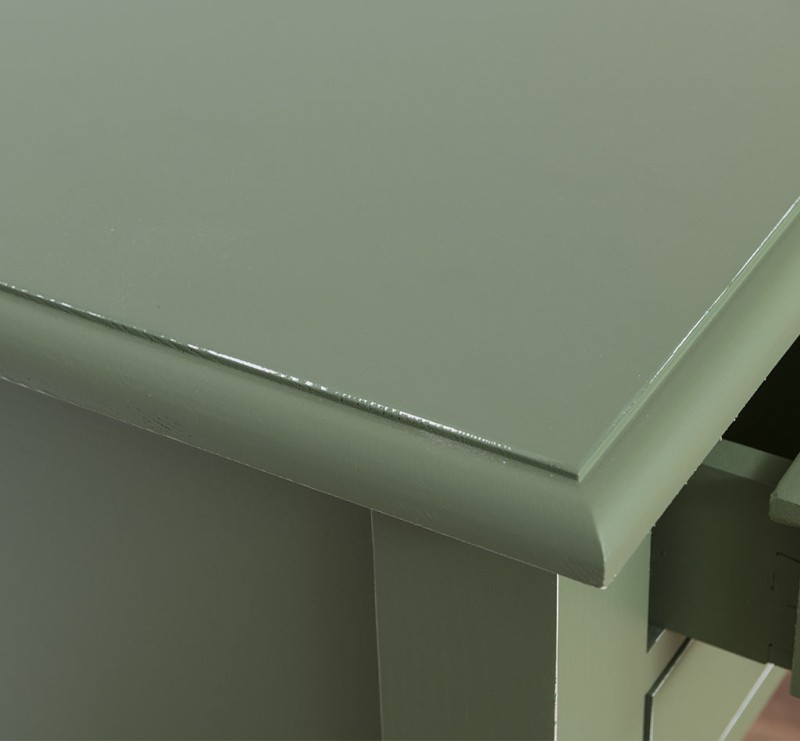 Dies ist ein stilvoller, hochwertiger Schreibtisch der wohnlich in Ihren Einrichtungsstil integriert werden kann. Unser Schreibtisch ist aus massivem, hochwertigen Echtholz und wird im Landhaus Stil hergestellt. Das Produkt profitiert von drei Schublade und einem großzügigen Platz für den Computer – oder Stauraum hinter den Türen. Die Abmessungen: ca.: Höhe 78 cm - Breite 140 cm - Tiefe 70 cm Außenfarbe - frei wählbar Innenfarbe - frei wählbar Massivholz Möbel 3 Schubladen montiert Landhausstil 100% Kieferholz verschiedene Farben wählbar Beschläge/Griffe wählbar Geben Sie bitte Ihre gewünschte Farbe für Innen & Außen beim Kauf im Kommentarfeld mit an. Oberflächen und Farben sind frei wählbar. 36 Farben und 8 Oberflächen (lackiert/gewachst/Natur usw.) - Andere Abmessungen und Sonderanfertigungen sind möglich. Bitte Fragen Sie uns.