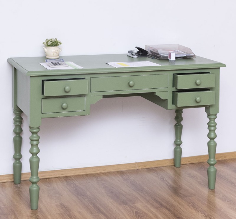 Schreibtisch mit gedrechselten Beinen -Landhaus Stil – verschiedene Farben -5 Schubladen