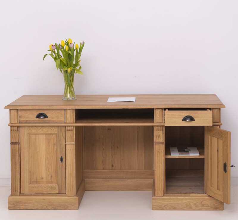 Produktinformationen "Schreibtisch Eiche massiv 160 cm im Landhaus Stil"