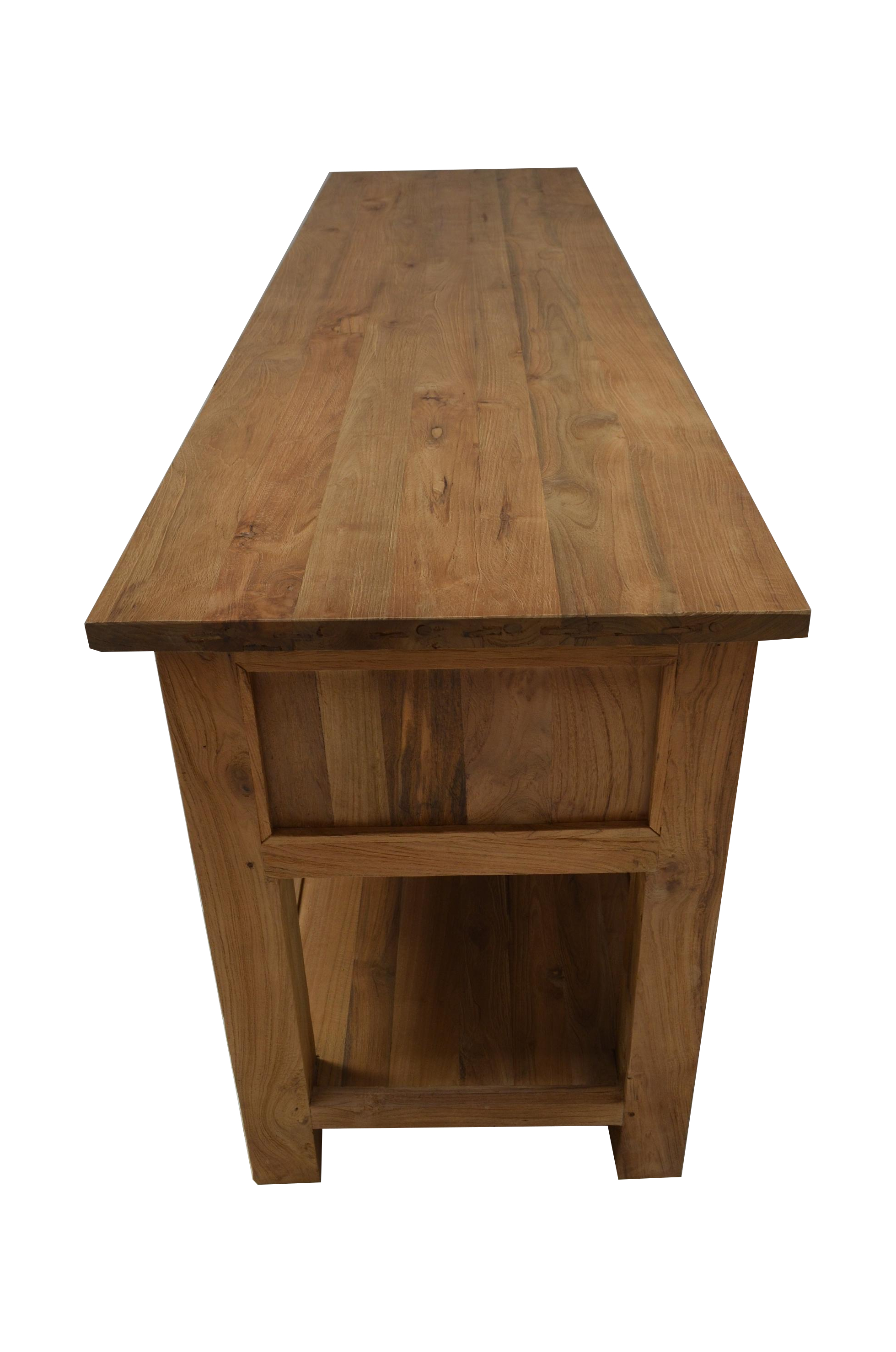 Der Wandtisch Mammoet wird Sie direkt begeistern. Der schöne Konsolentisch wurde aus recyceltem Teak produziert. Das gibt dem Tisch den unverwechselbaren Charakter. Mit massiven Blockbeinen und sechs großen Schubladen. Die Tischplatte hat einen leichten Überstand. Das Teakholz ist recycelt und rustikal naturbelassen. Die Konsole ist vielseitig nutzbar, überall wo Sie gebraucht wird. Als Konsolentisch im Flur, als Wandtisch im Schlafzimmer oder als ein dekoratives Sideboard im Wohnzimmer.