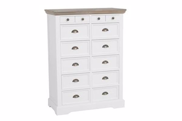 Die Kommode Fleur 88 cm hat eine schöne graue Holzplatte, die diesem Möbelstück einen romantischen und ländlichen Look verleiht! Dieser Speckschrank enthält vierzehn Schubladen. Kombinieren Sie diesen Artikel mit den anderen Möbeln aus unserer Fleur-Kollektion!