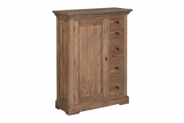 Der Vertiko Bologna 100 cm wird nach traditionellen Methoden aus 100 % recyceltem Teakholz hergestellt. Das sorgfältig ausgewählte Altholz sorgt für ein schönes natürliches und ländliches Erscheinungsbild. Dieses Möbelstück enthält eine Tür und fünf Schubladen.