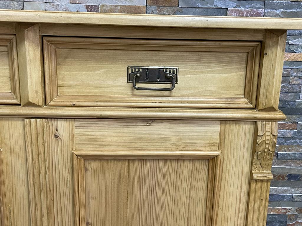 Ein schönes Vertiko im Landhaus Stil aus Massivholz. Im Inneren befinden sich zwei Regalböden auf einer verstellbaren Zahnleiste. Das Vertiko ist mit einen natürlichen antikwachs behandelt und aufpoliert. Dieses Möbelstück wurde nach traditionellen Vorgaben aus Altholz gebaut. Ein schöner Schrank aus Massivholz. Die vorhandenen Gebrauchspuren haben einen antiken Charakter und sind bewusst gewollt. Mit Schubladen und alten Beschlägen. Das Weichholz Vertiko ist im angesagten Landhausstil und hinterlässt überall in Ihrem Haus einen prägenden Eindruck. Vertiko Weichholz gewachst und aufpoliert Anlieferung aufgebaut, nicht zerlegbar Abmessungen: H/B/T- ca. 140/100/45 cm