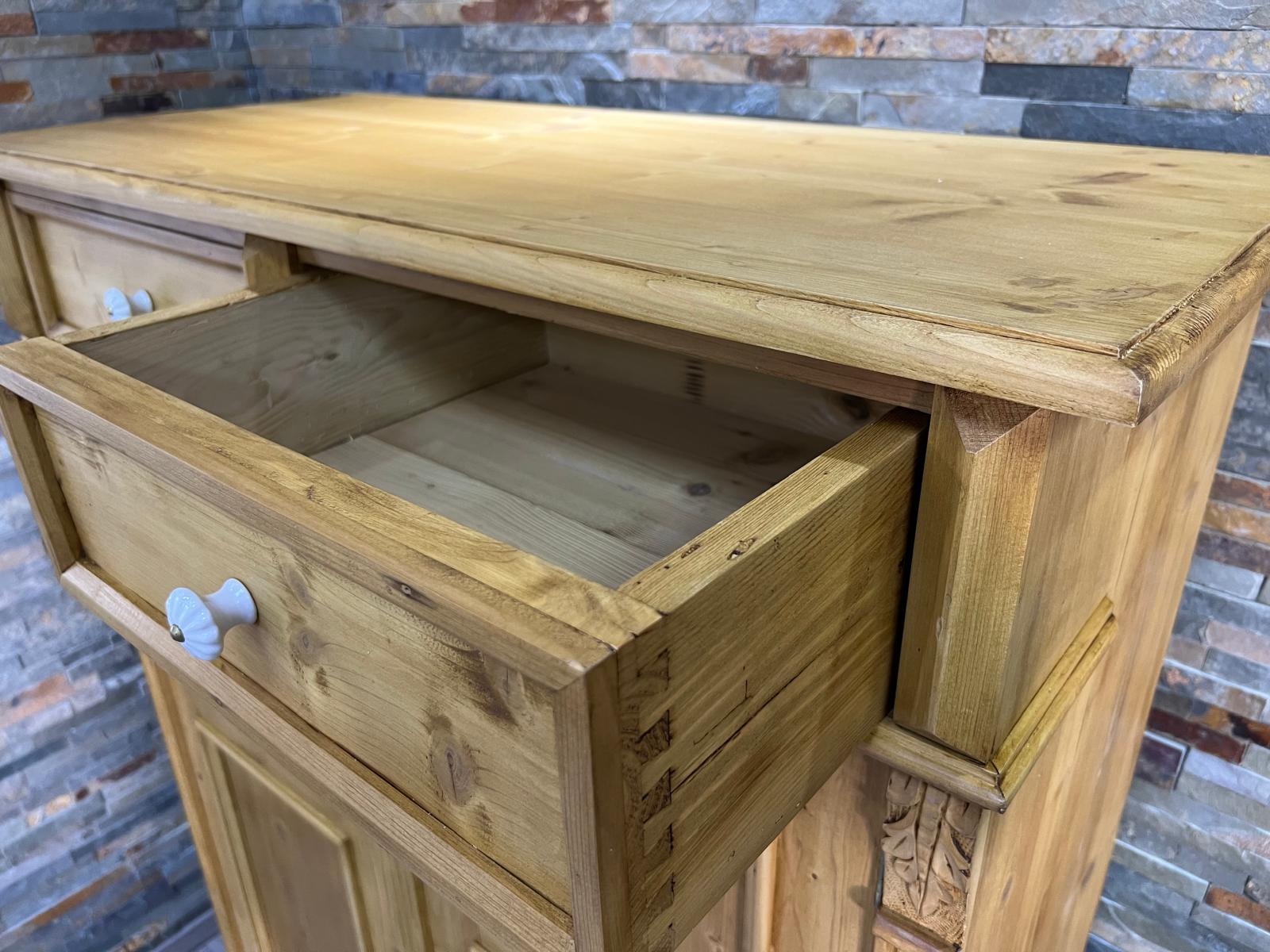 Das Weichholz Vertiko im antiken Landhaus-Jugendstil ist nicht nur ein ästhetisches Highlight, sondern auch ein praktisches Möbelstück, das Ihnen dabei hilft, Ordnung zu halten und Ihren persönlichen Stil zum Ausdruck zu bringen. Lassen Sie sich von seinem Charme verzaubern und holen Sie sich ein Stück Nostalgie in Ihr Zuhause.