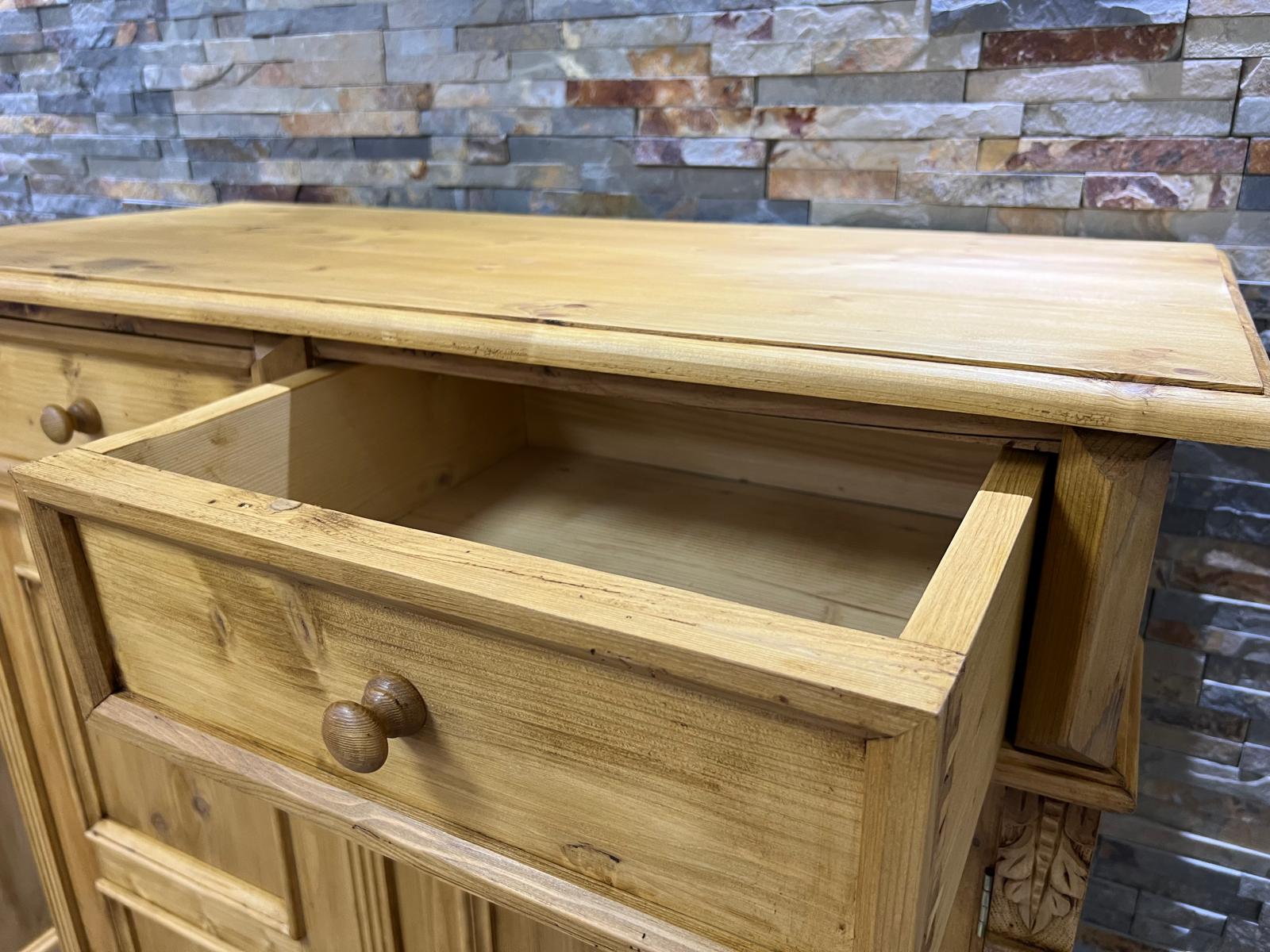 Das Weichholz Vertiko im antiken Landhaus-Jugendstil ist ein wunderschönes Möbelstück, das jedem Raum einen Hauch von Nostalgie verleiht. Hergestellt aus hochwertigem Weichholz, besticht dieses Vertiko durch seine natürliche Maserung und die warme Farbe des Holzes.