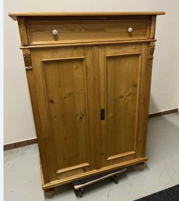 Dieses Vertiko aus Weichholz im Landhaus-/Jugendstil verbindet handwerkliche Tradition mit zeitloser Eleganz. Mit einer Höhe von 135 cm, einer Breite von 100 cm und einer Tiefe von 45 cm bietet es praktischen Stauraum und ist gleichzeitig ein stilvolles Highlight für Ihr Zuhause.