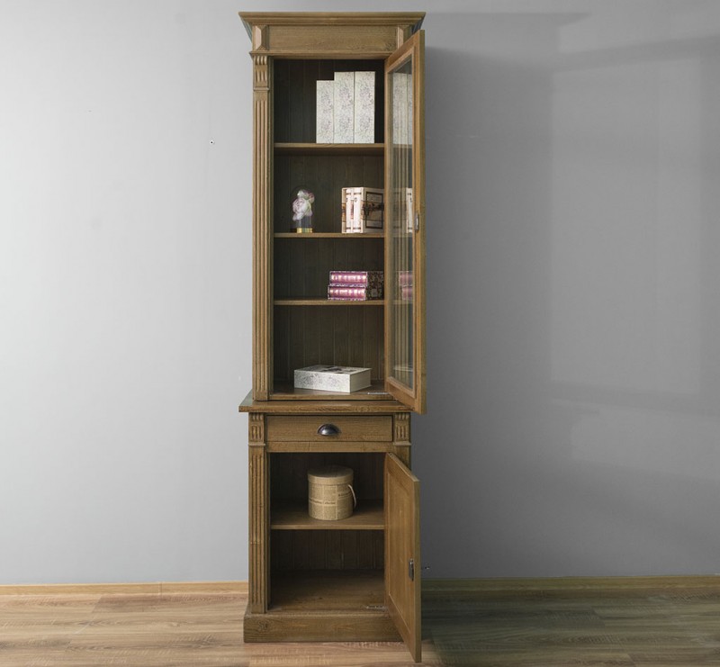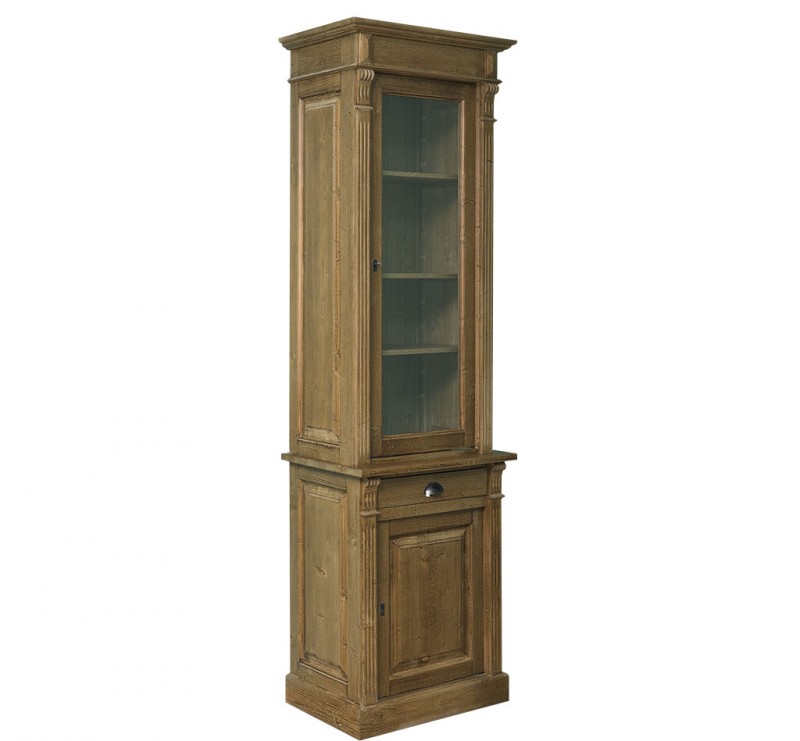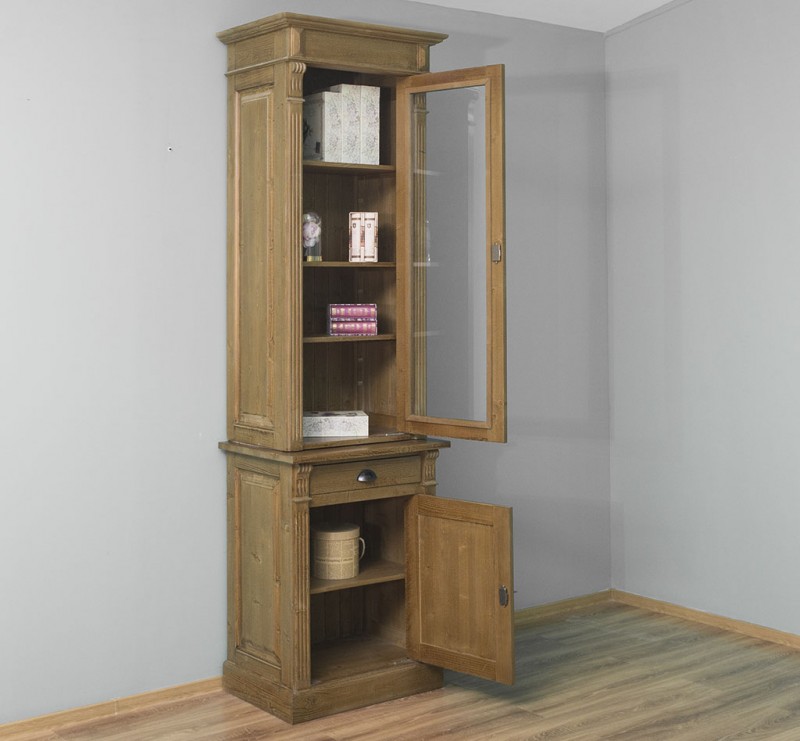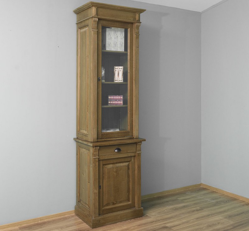 Produktinformationen "Glasvitrine - mit einer Schublade, einer Glastür und einer massiven Tür"
