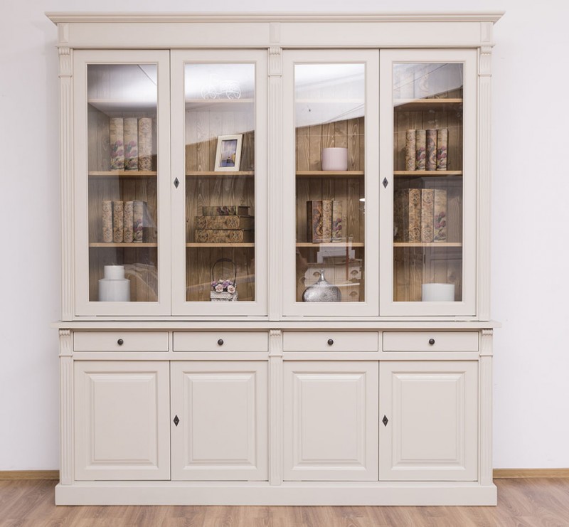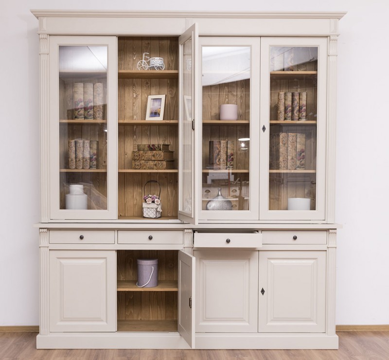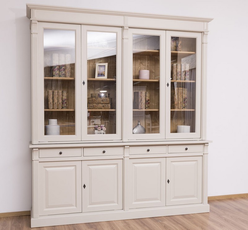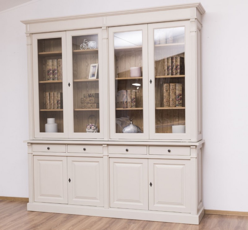 Produktinformationen "Französischer Landhausstil Glasvitrine H/B/T 230/300/51 cm, mehrteilig, Massivholz"