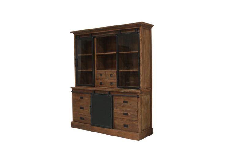 Teak Vitrinen Schrank Meas 250cm ist aus recyceltem Teakholz gefertigt. Das sorgfältig ausgewählte Teakholz sorgt für ein schönes natürliches und ländliches Erscheinungsbild. Dieses Möbelstück enthält vier Glasschiebetüren, vier geschlossene Türen und neun Schubladen. Sehr praktisch, um alle möglichen Dinge aufzubewahren. Dieser ländliche Vitrinen Schrank wird Sie begeistern. Durch die Kombination von Farbe und Material passt dieses Sideboard gut in jede ländliche Einrichtung. Kombinieren Sie diesen Artikel mit den anderen Möbeln aus unserer Teak-Kollektion! Der Vitrinenschrank ist mehrteilig zerlegbar für den Transport Die Abmessungen: Höhe 230 cm - Breite 250 cm - Tiefe 50 cm. fertig montiert Massivholz mehrteilig 100% recyceltem Teakholz