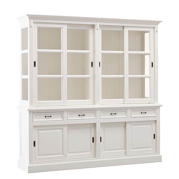 Unser Vitrinen Schrank Vincenza ist eine schöne 2-teilige Vitrine im angesagten Landhausstil. Die Vitrine ist mit großen Schiebetüren und Schubladen ausgestattet. Ihre Einrichtungsgegenstände lassen sich durch die klare Glasfront wunderbar präsentieren. Unsere Landhaus Möbel aus der Serie Vincenza sind in verschiedenen Farben und Abmessungen erhältich. Die Schubladen sind leichtläufig und mit einer soft-close Funktion ausgestattet. Der Schrank bietet Ihnen viel Stauraum für Bücher, Geschirr, Gläser und Accessoires an. Das Möbelstück wird zweiteilig montiert angeliefert. Das Oberteil wird nur auf das Unterteil gestellt und ist direkt wohnfertig.